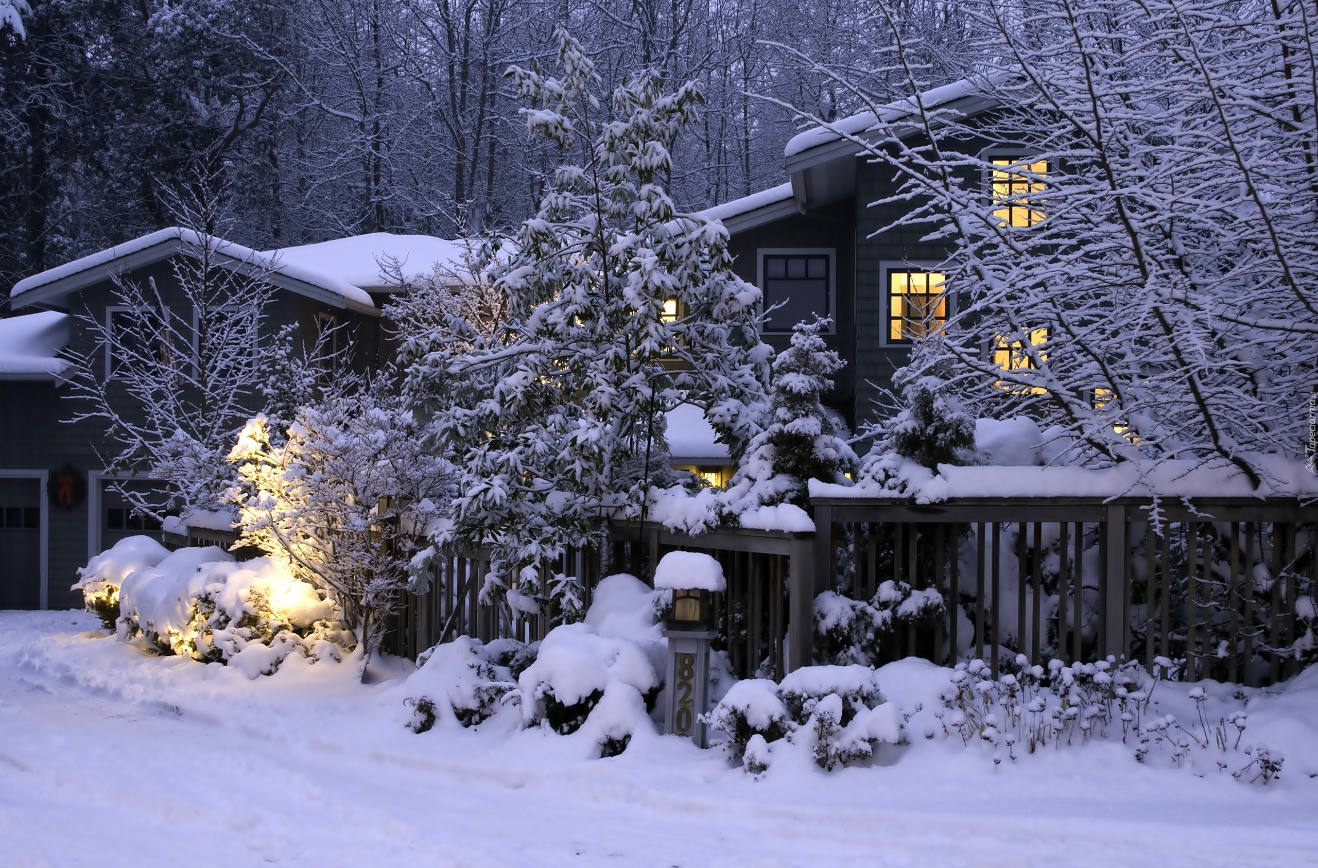 Edytor tapety: Zima, Dom, Drzewa, W Śniegu