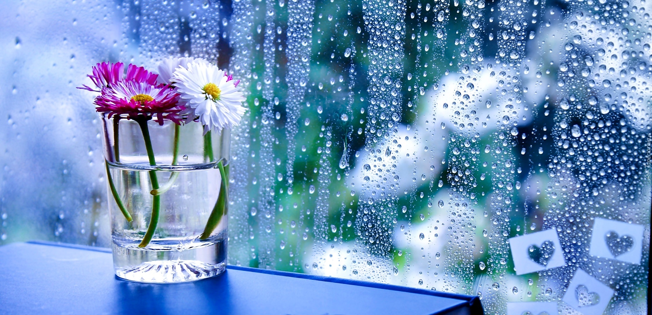 Edytor tapety: Kwiaty, Szyba, Deszcz