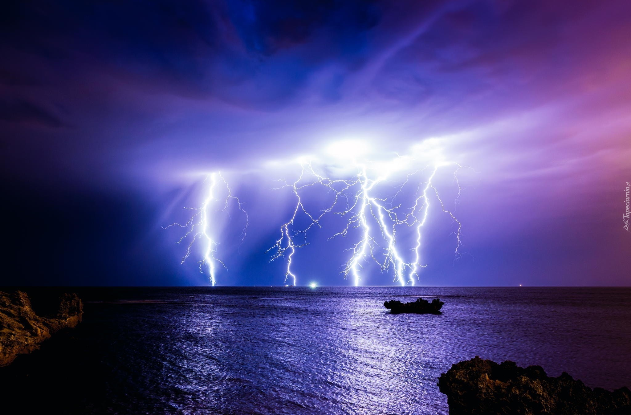 Edytor tapety: Burza, Pioruny, Błyskawica, Morze, Noc