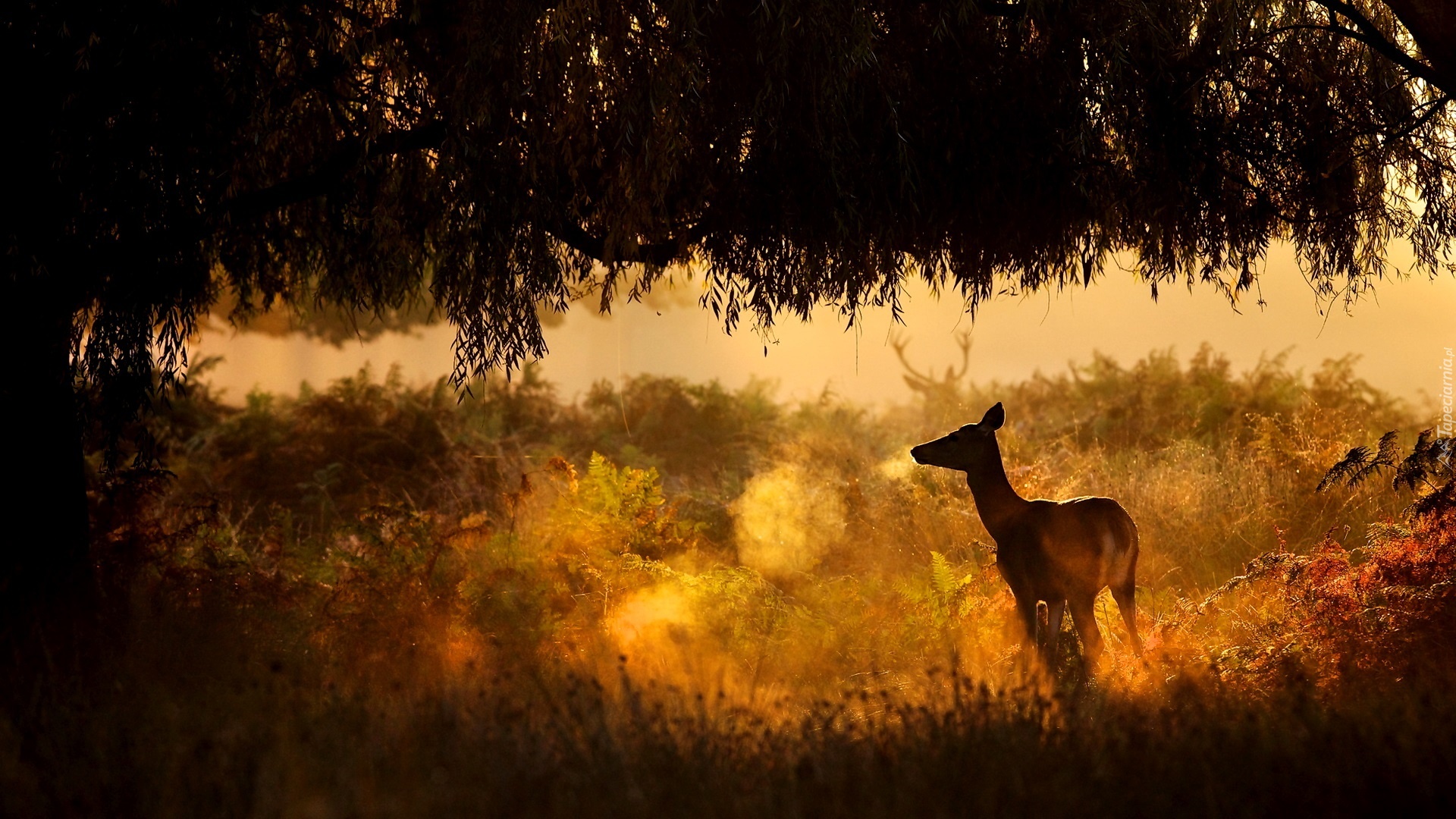 Edytor tapety: Sarna, Rykowisko, Zachód Słońca