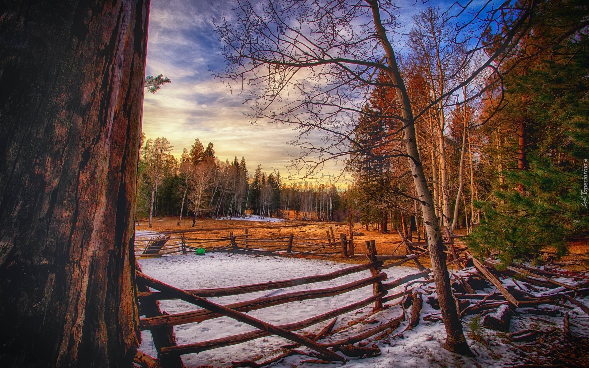 Edytor tapety: Zima, Las, Zagrody