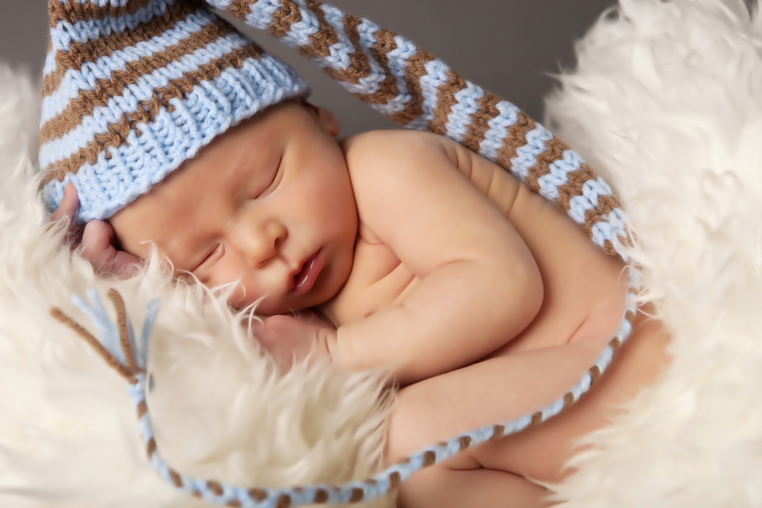 Edytor tapety: Śpiące, Dziecko, Czapka, Biały, Puch