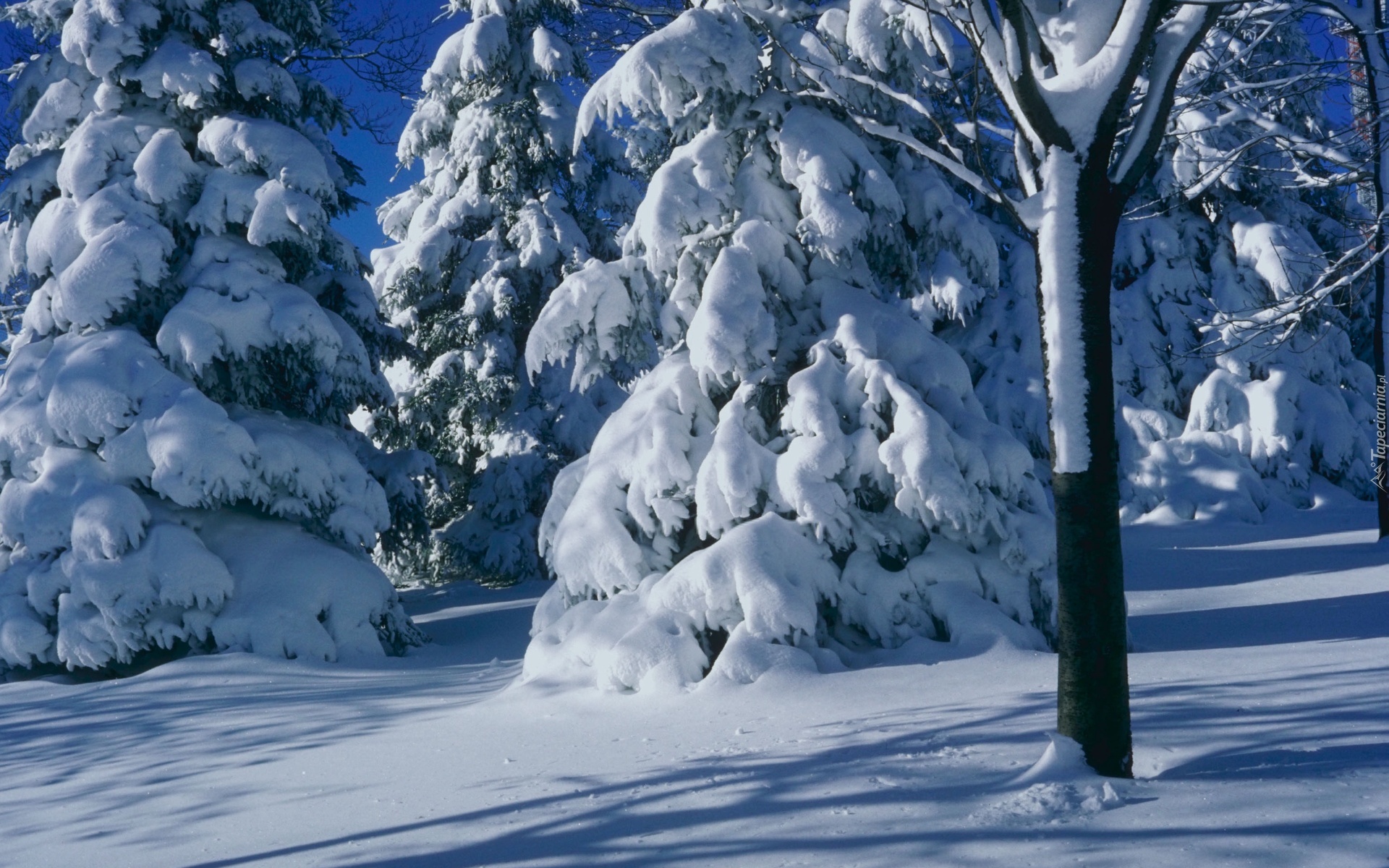Edytor tapety: Zima, Ośnieżone, Drzewa, Świerki