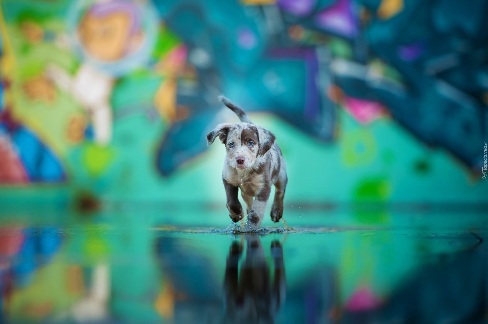 Edytor tapety: Pies, Woda, Niebieski, Oczy, Owczarek australijski-australian shepherd