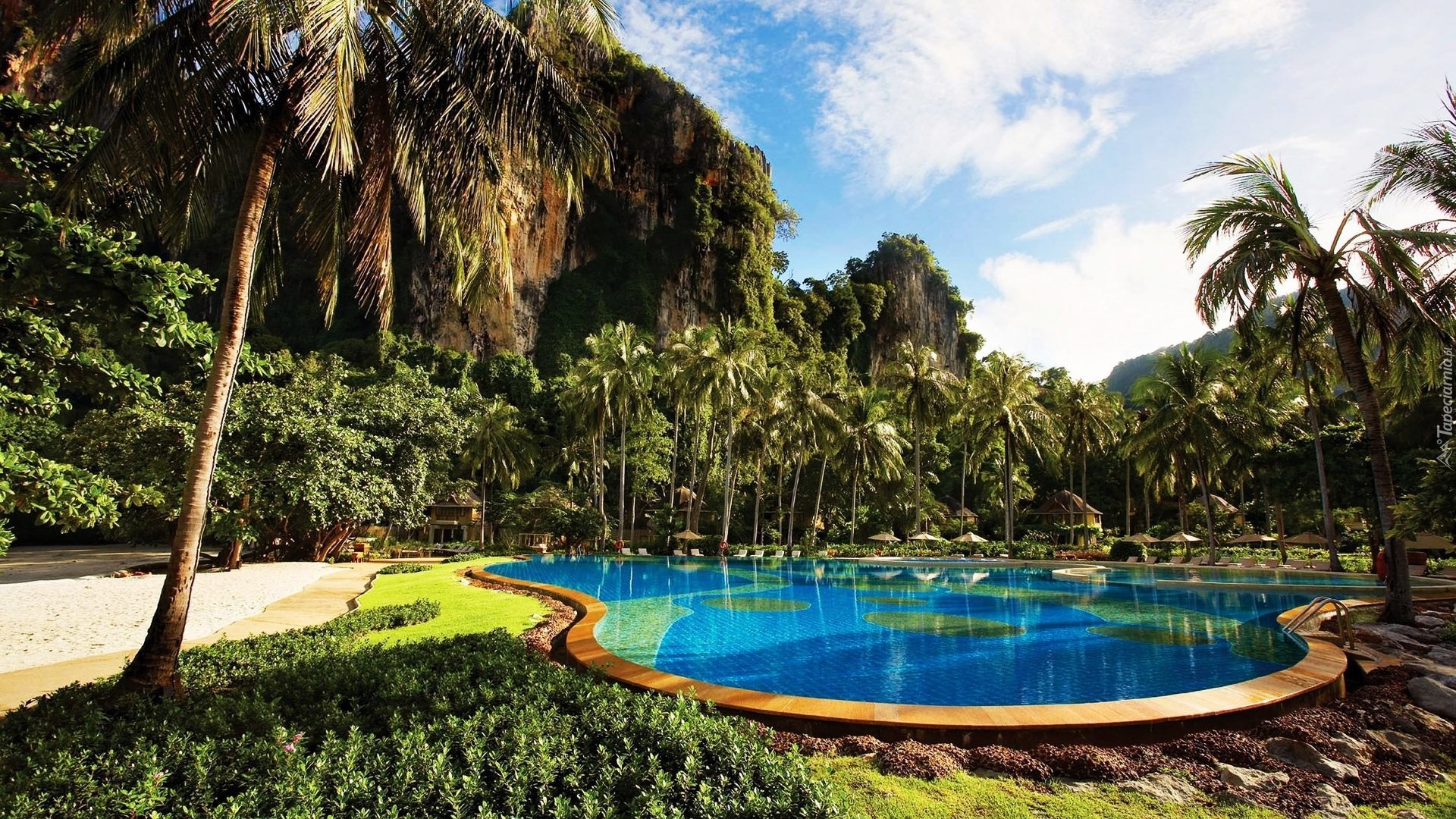 Edytor tapety: Góry, Drzewa, Palmy, Basen