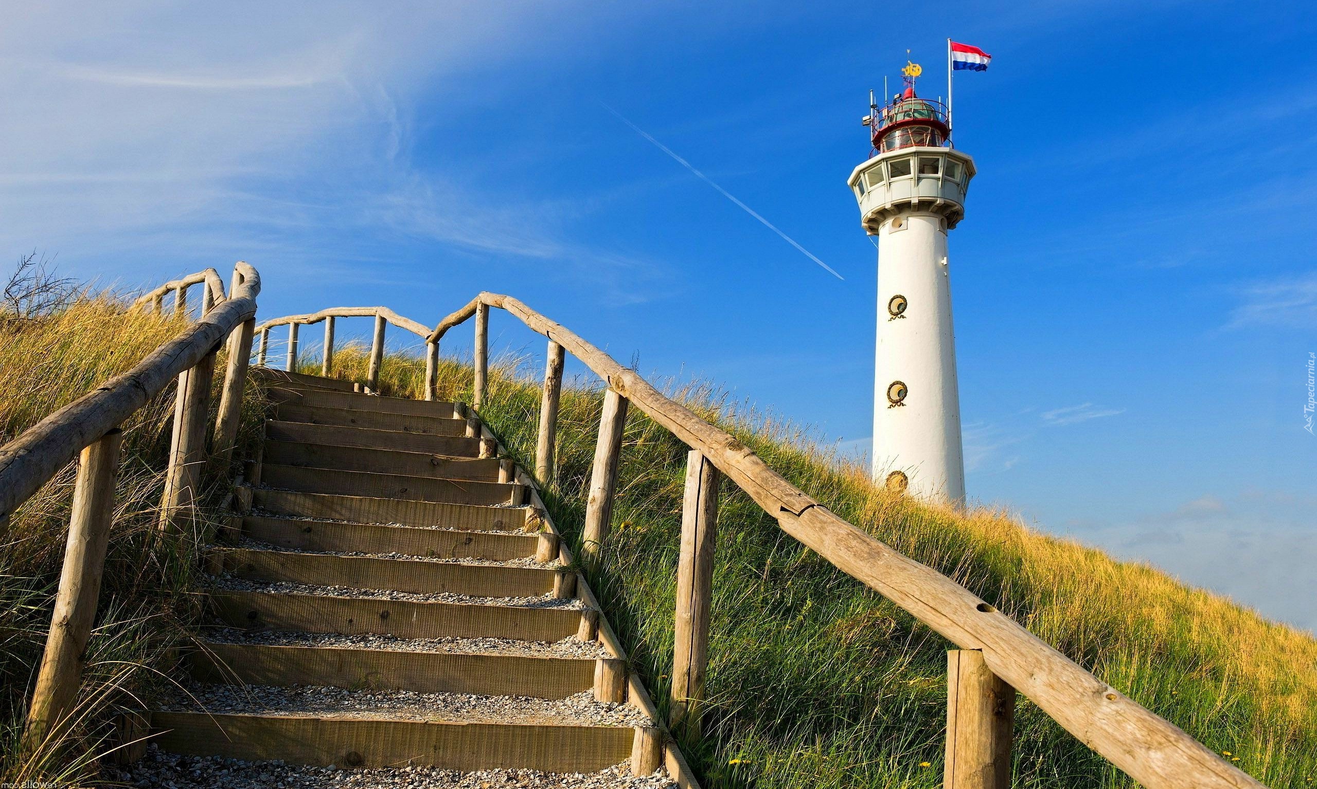Edytor tapety: Latarnia morska, Lato, Schody, Niebo