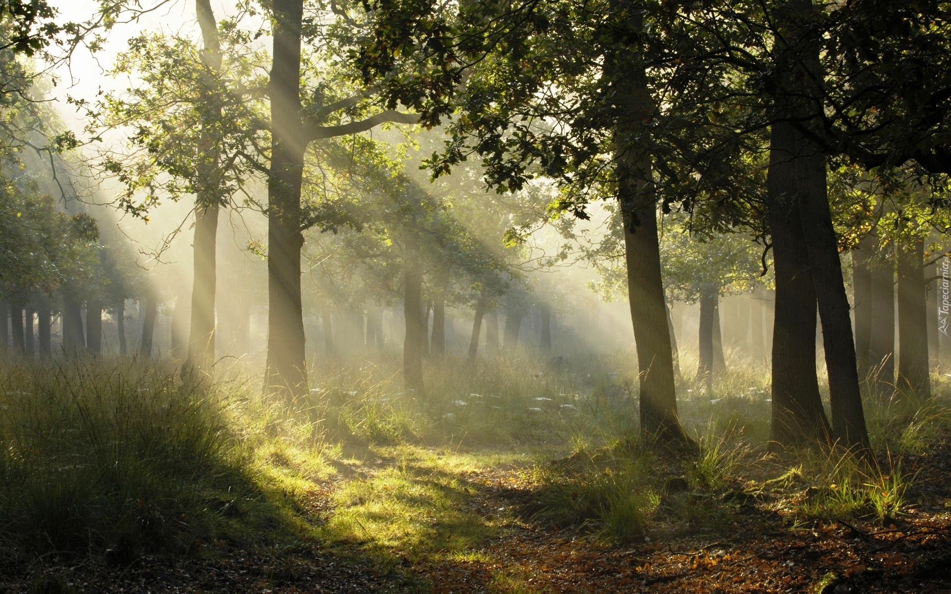 Edytor tapety: Las, Mgła, Przebijające Światło