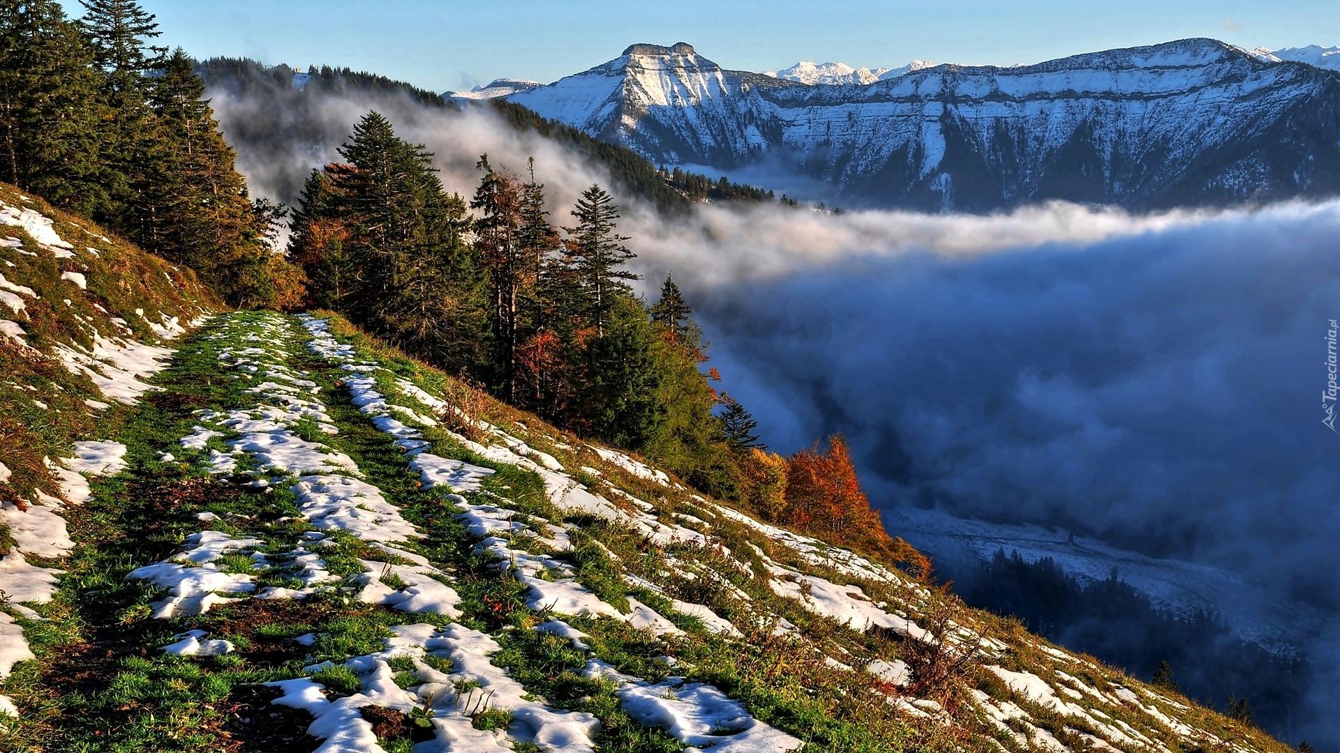 Edytor tapety: Góry, Mgła, Las