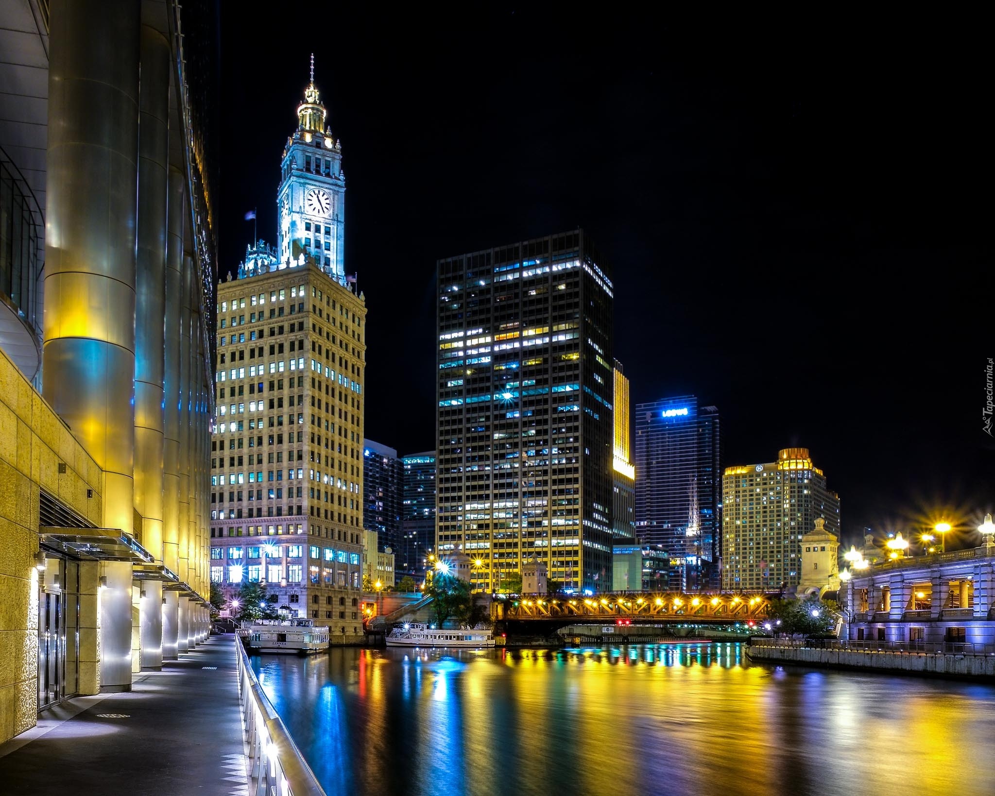 Edytor tapety: Chicago, Miasto, Nocą, Port