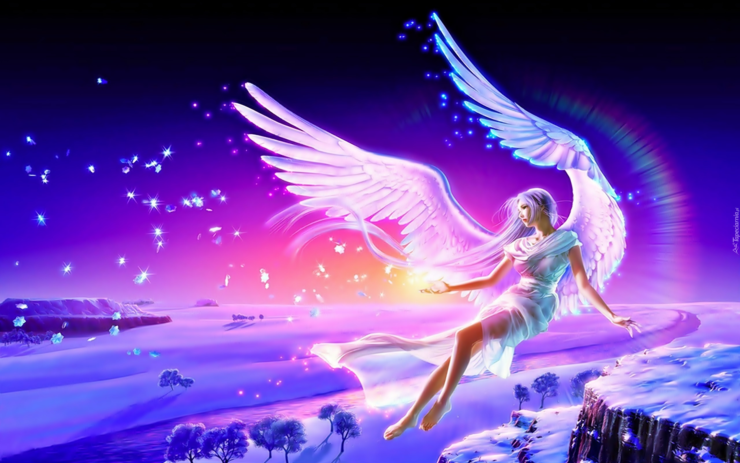 Edytor tapety: Anioł, Pejzaż, Zimowy, Fantasy