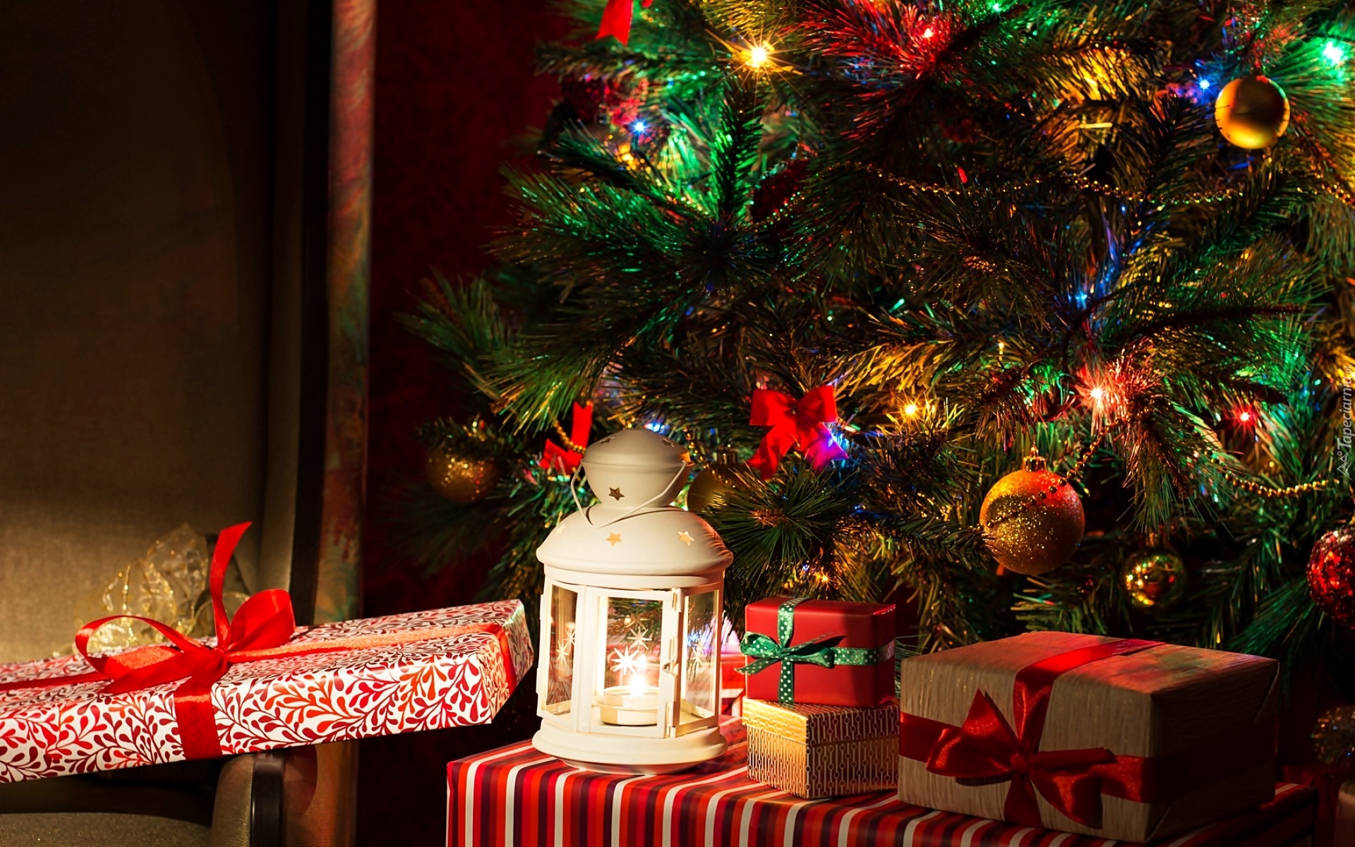 Edytor tapety: Świąteczne, Ozdoby, Prezenty, Dekoracje, Lampion, Choinka