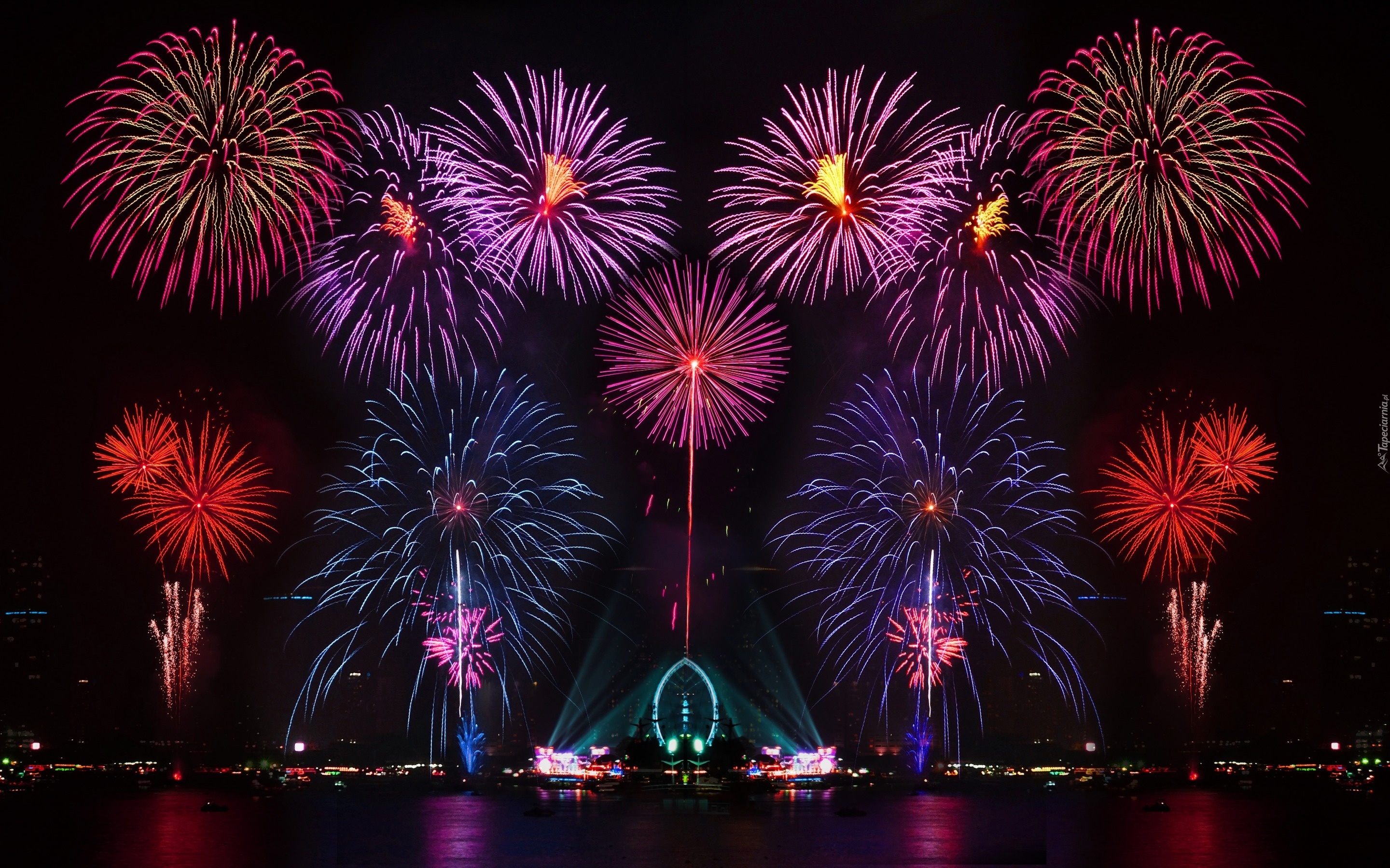 Edytor tapety: Nowy Rok, Panorama, Miasta, Nocą, Fajerwerki