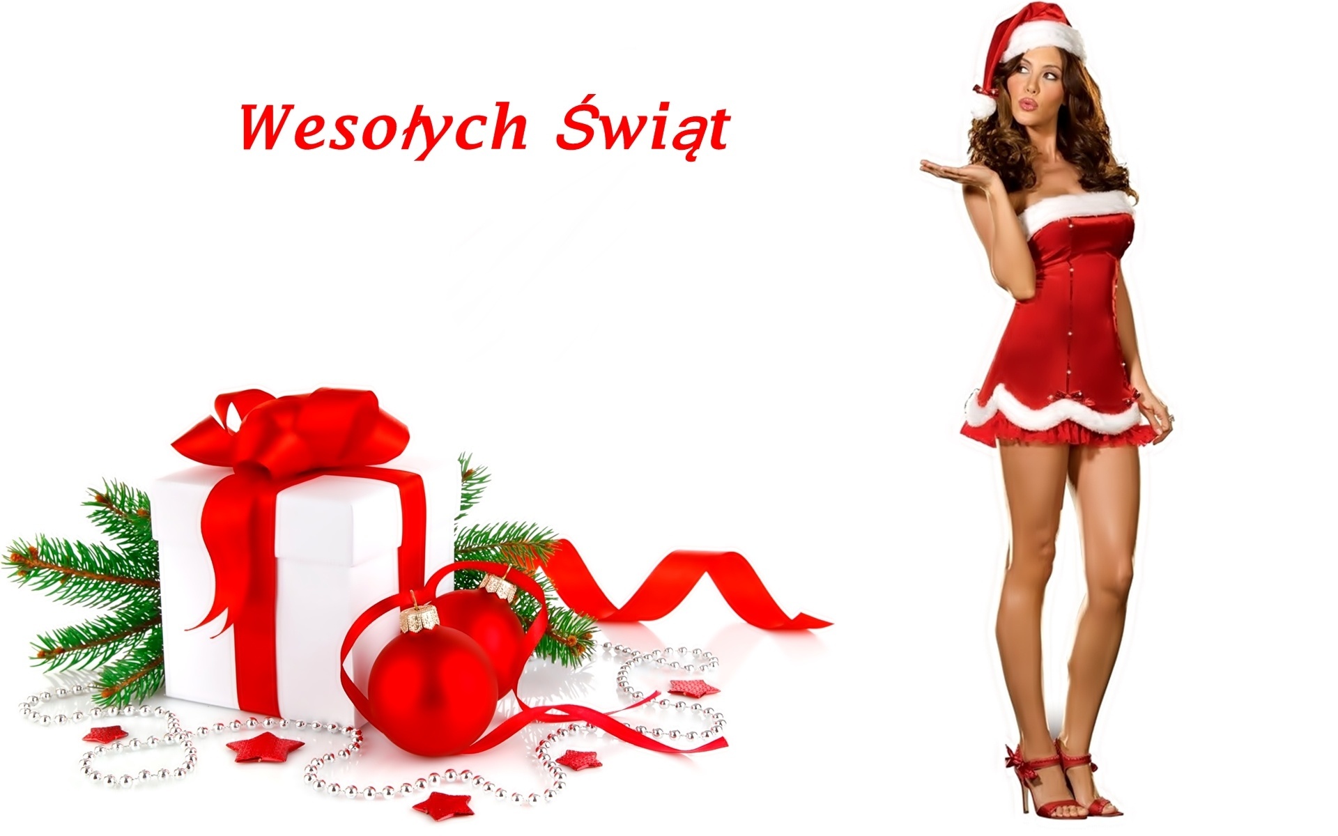 Edytor tapety: Kobieta, Strój, Mikołaja, Prezenty, Bombki