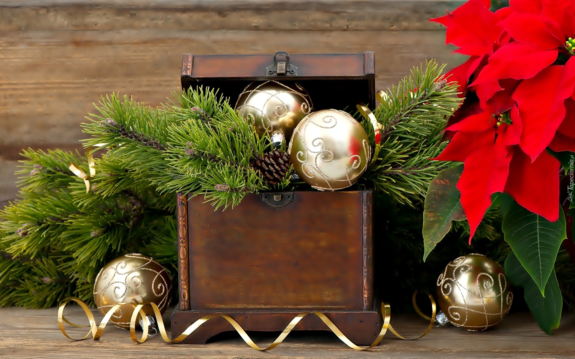 Edytor tapety: Boże Narodzenie, Dekoracja, Szkatułka, Bombki
