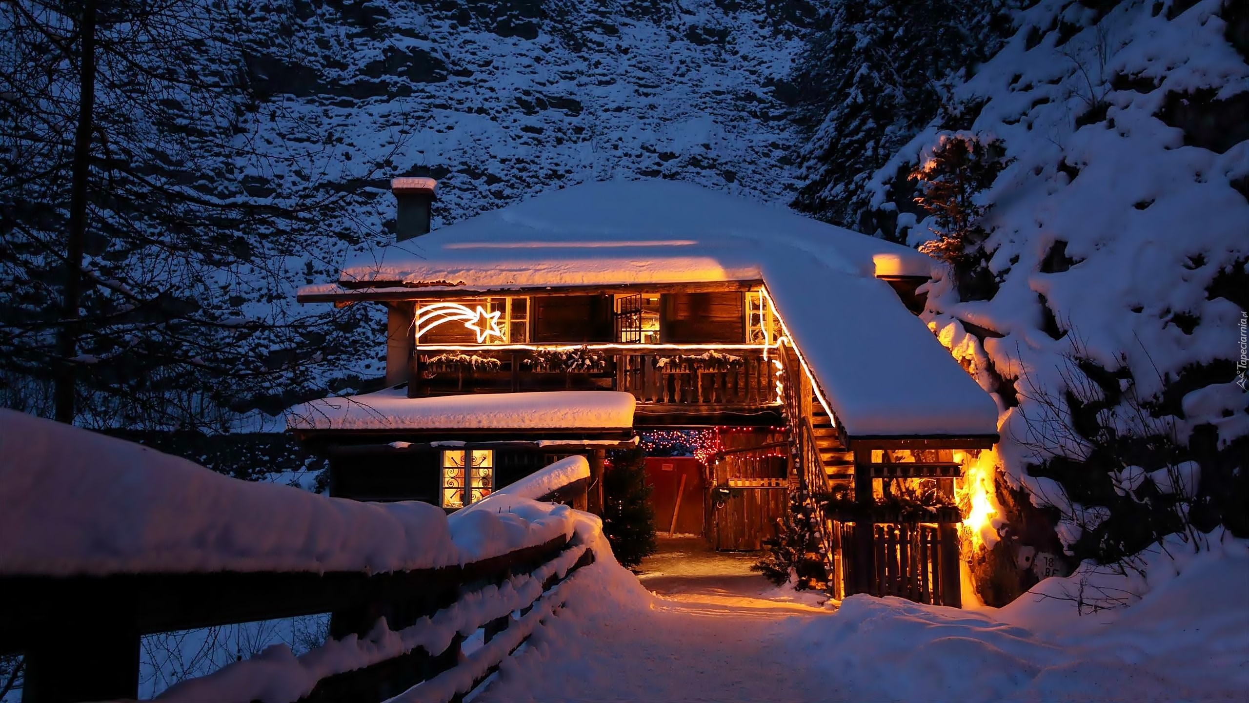 Edytor tapety: Zima, Oświetlony, Dom