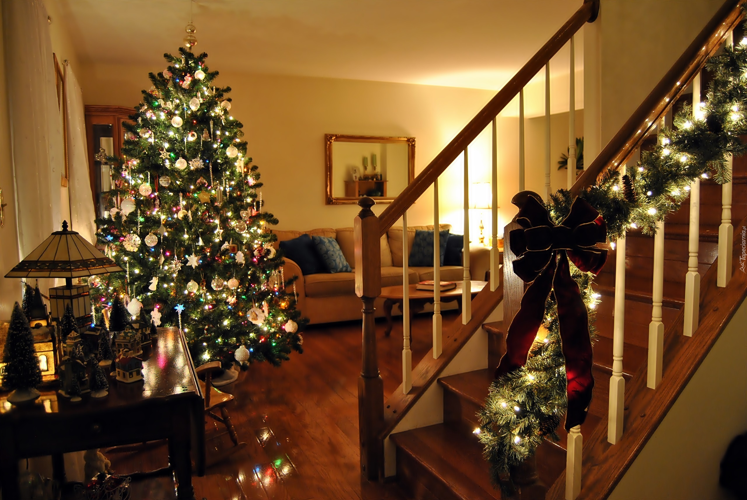 Edytor tapety: Salon, Choinka, Schody, Świąteczne, Dekoracje