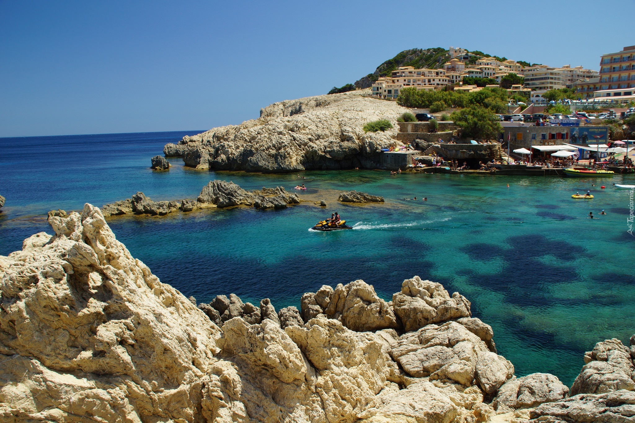Edytor tapety: Morze, Wybrzeże, Skały, Miasto