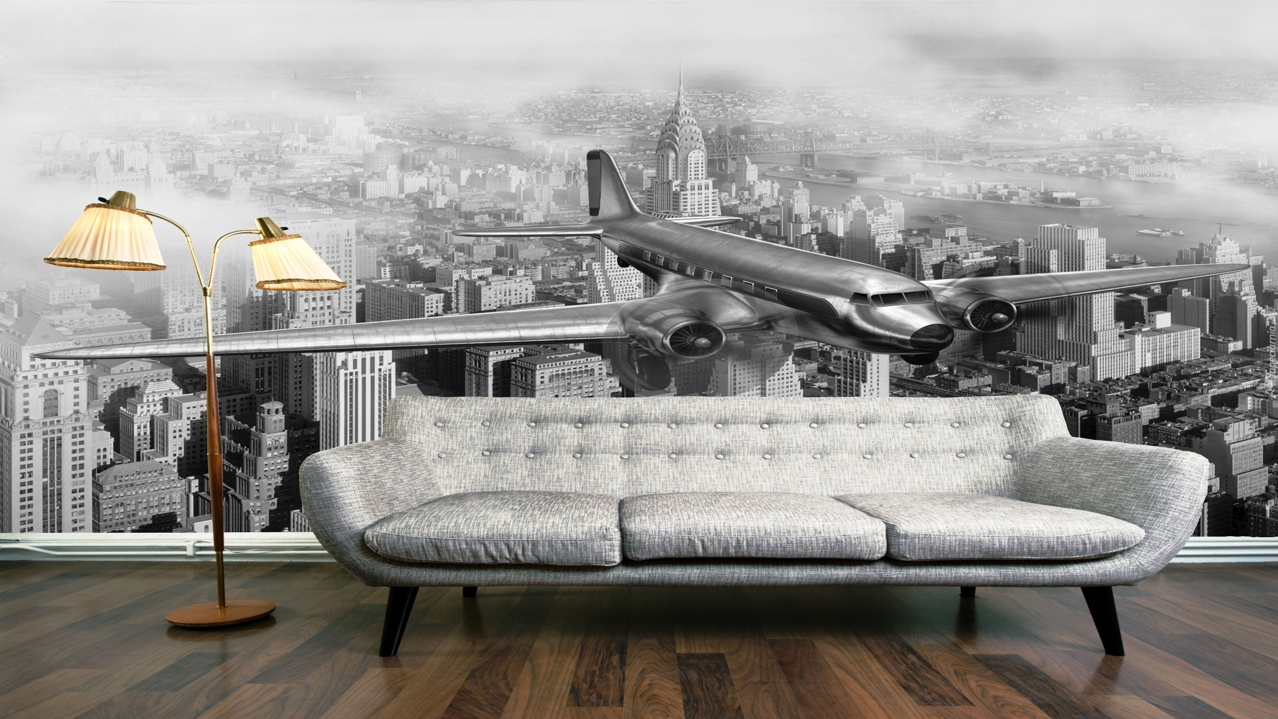 Edytor tapety: Dom, Kanapa, Widok, Miasto, Samolot, Wnętrze