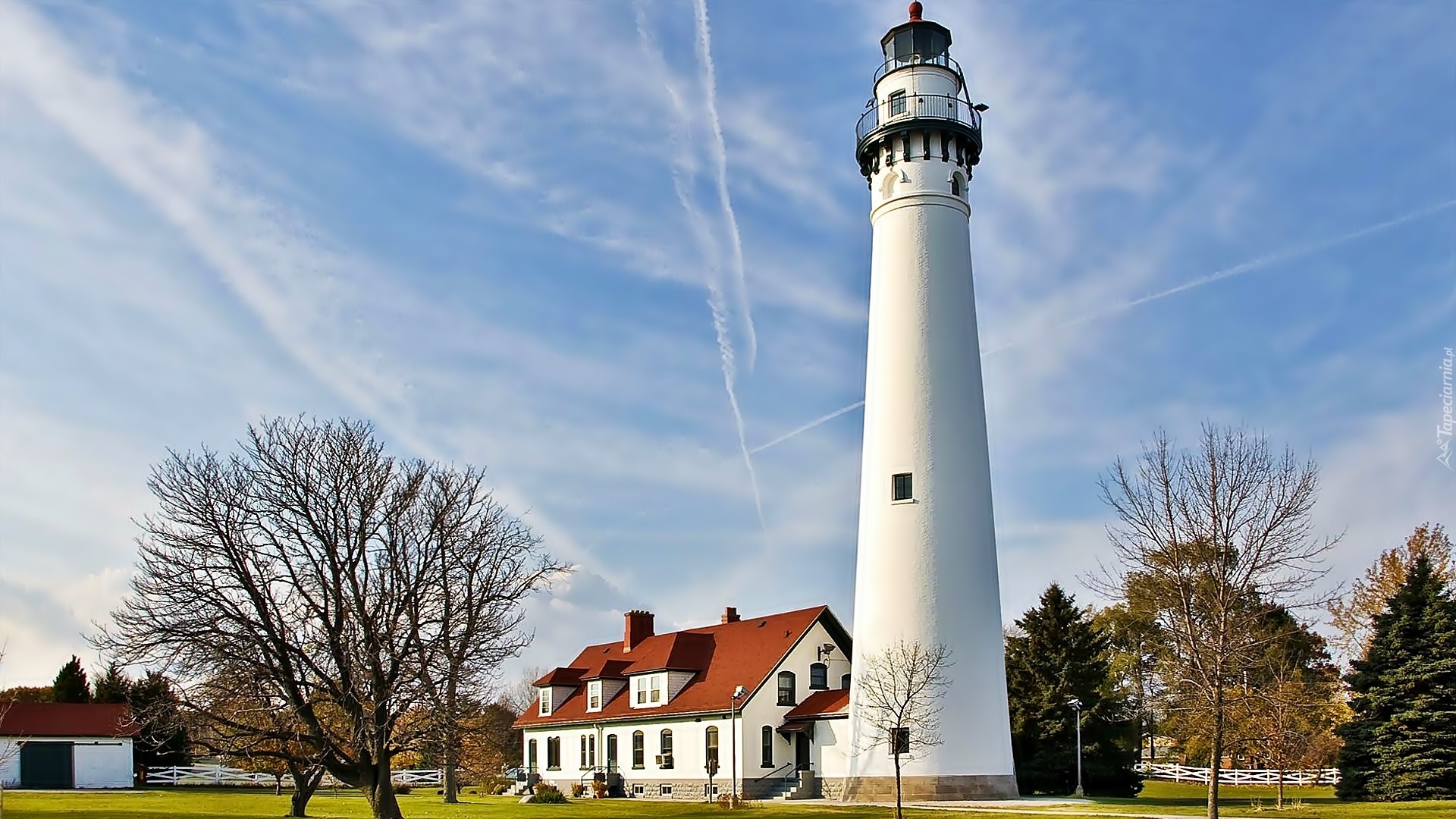 Edytor tapety: Latarnia Morska, Domy, Drzewa