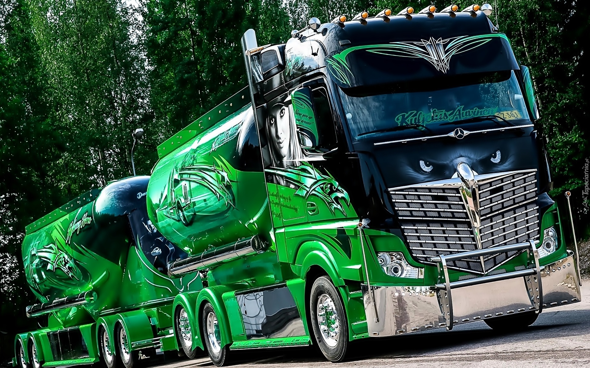 Edytor tapety: Ciężarówka, Mercedes Benz, Przyczepa, Cysterna