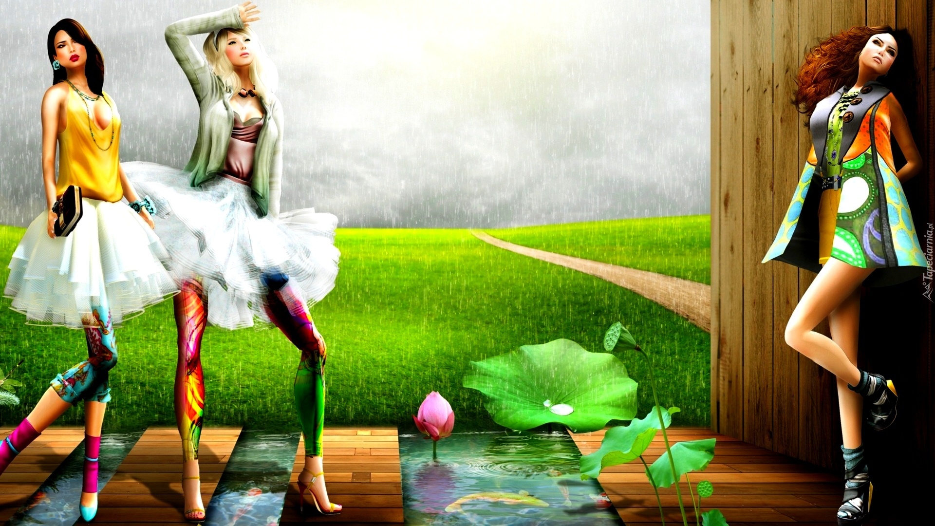 Edytor tapety: Kobiety, Łąka, Deszcz