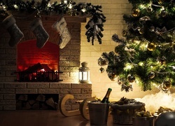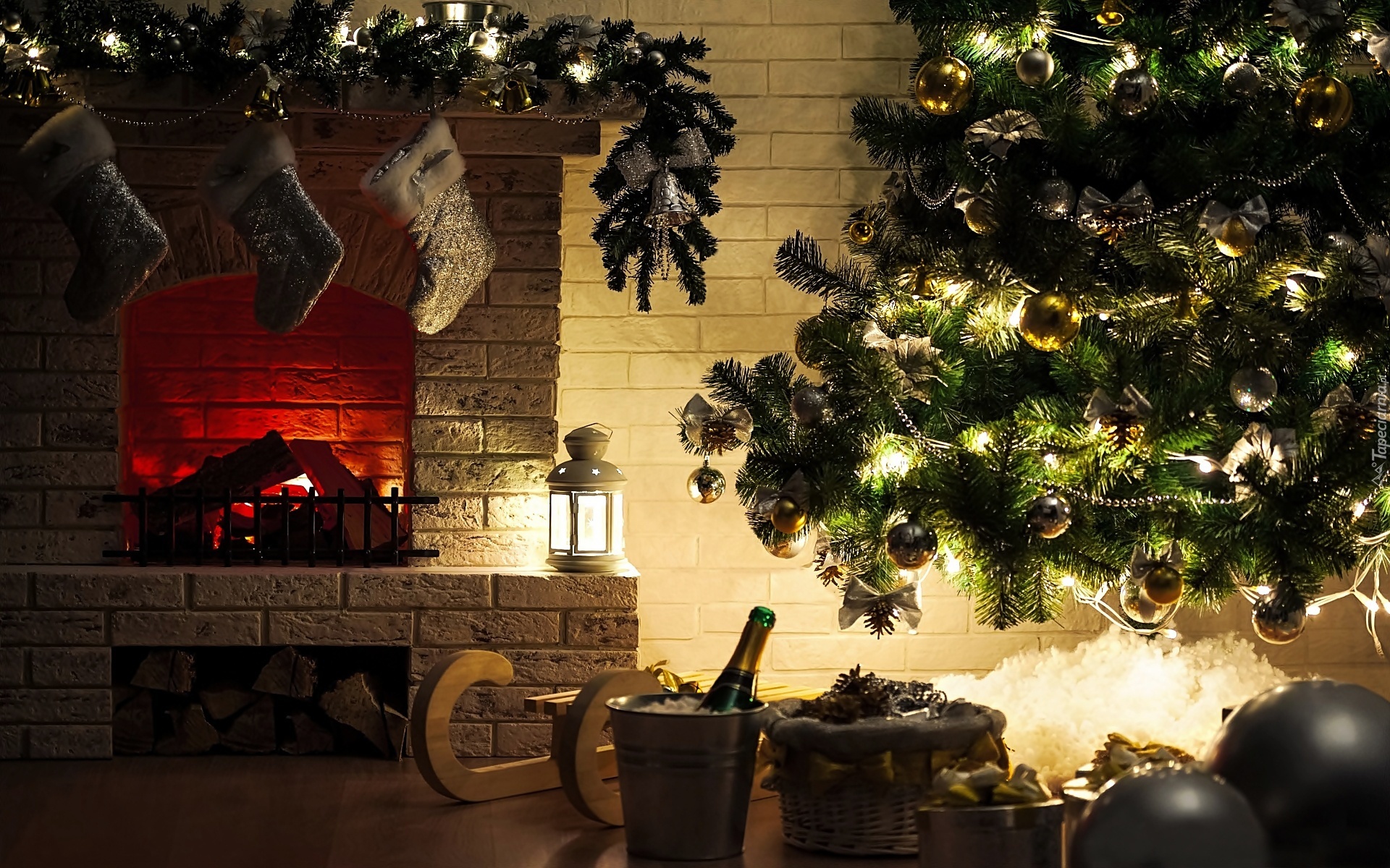 Edytor tapety: Choinka, Prezenty, Kominek