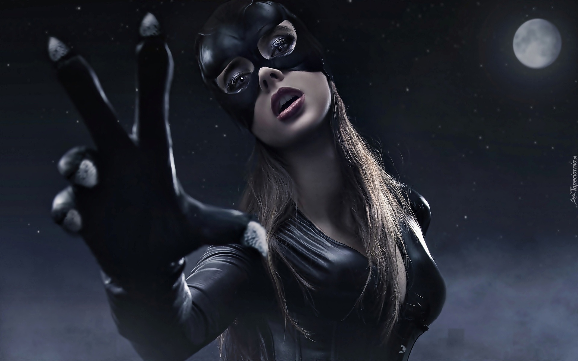 Edytor tapety: Kobieta, Maska, Kot, Księżyc