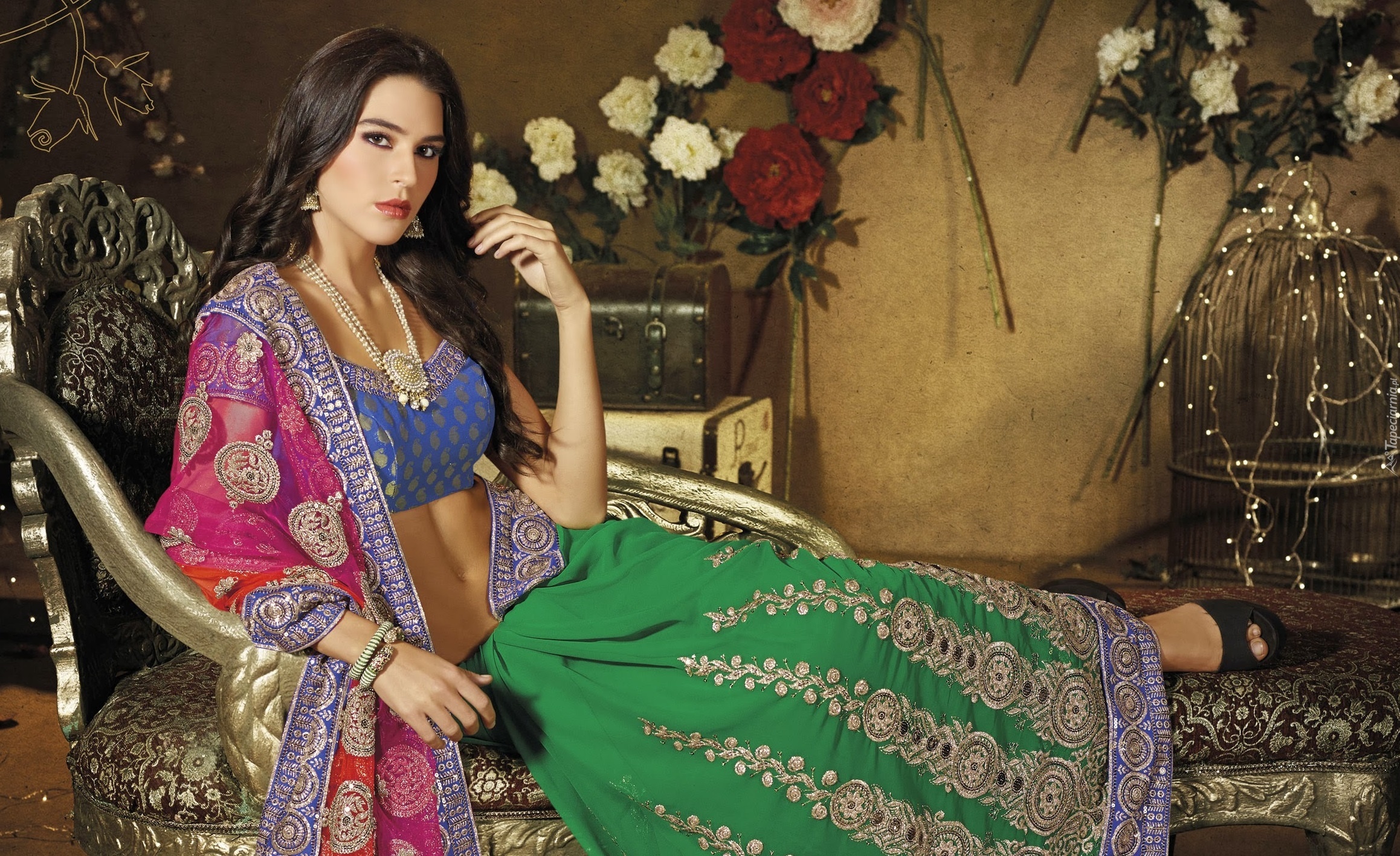 Edytor tapety: Kobieta, Sari, Fotel, Kwiaty