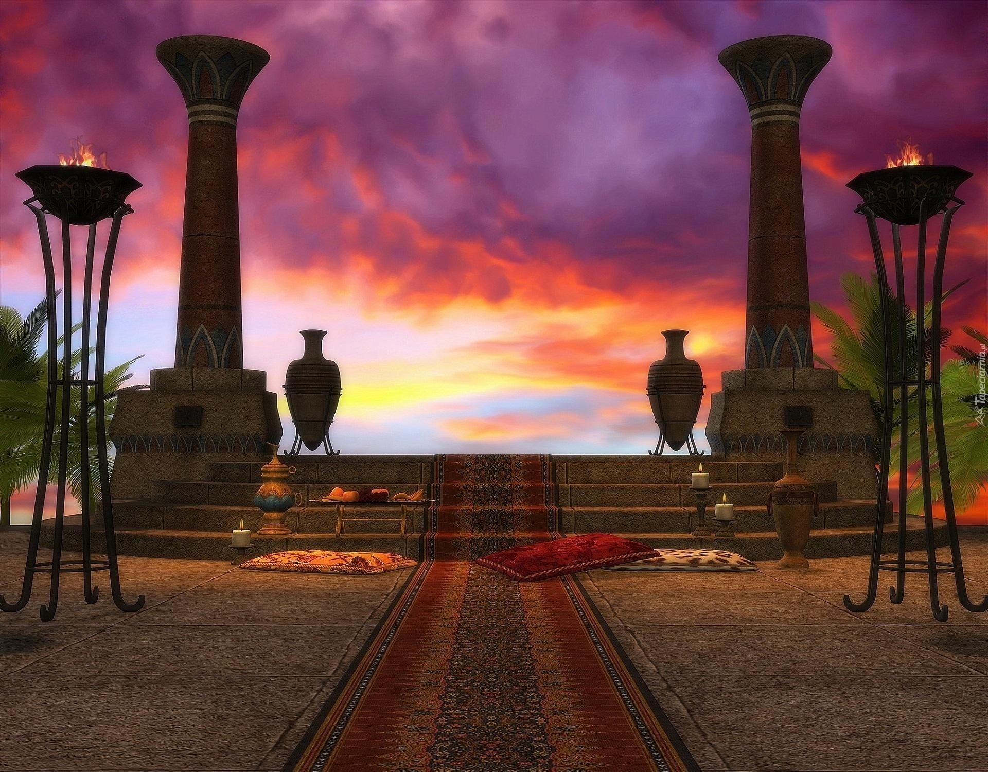 Edytor tapety: Dywan, Schody, Znicze, Kolumny, Wazy, Niebo, Świątynia