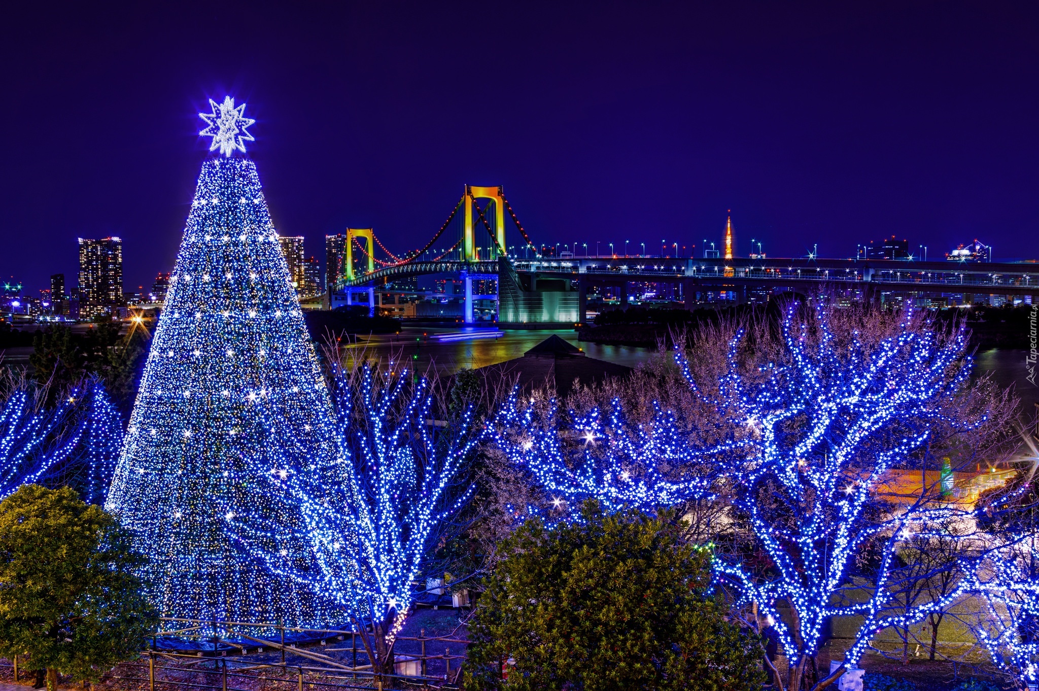 Edytor tapety: Most, Rzeka, Choinka, Dekoracje, Tokio
