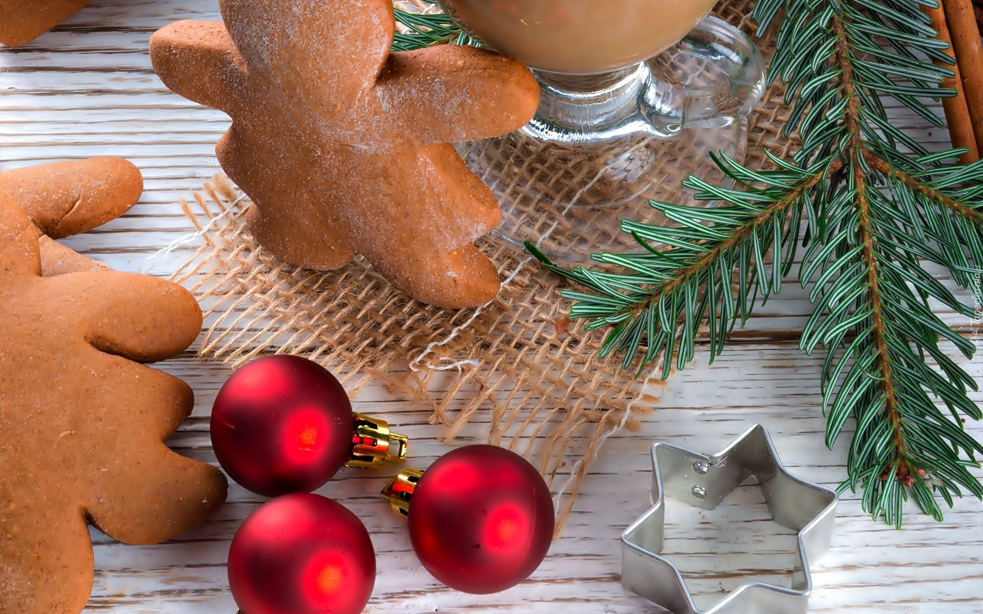Edytor tapety: Boże Narodzenie, Bombki, Pierniczki, Gałązka, Świerkowa