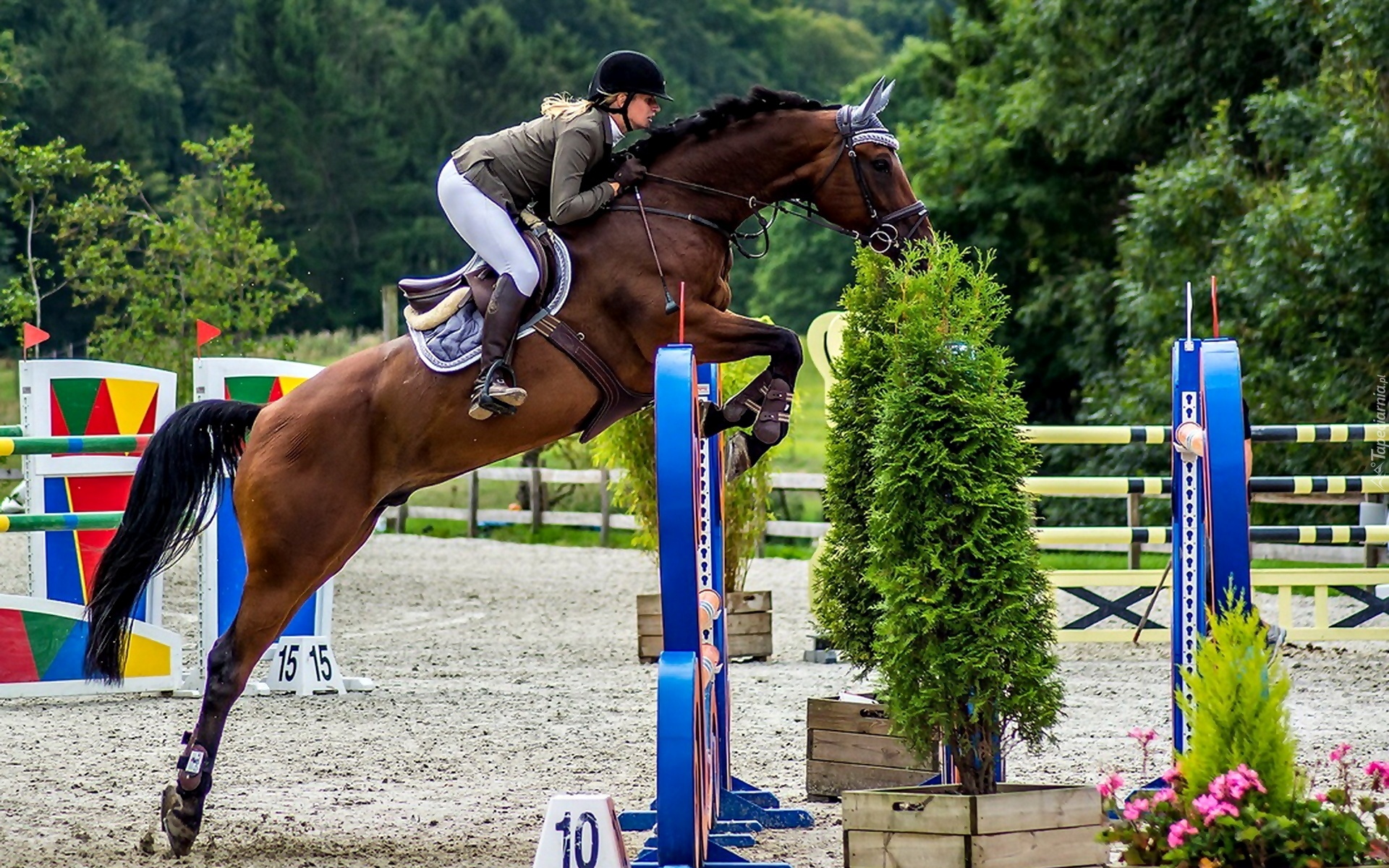 Edytor tapety: Jeździectwo, Koń, Przeszkoda, Dżokej