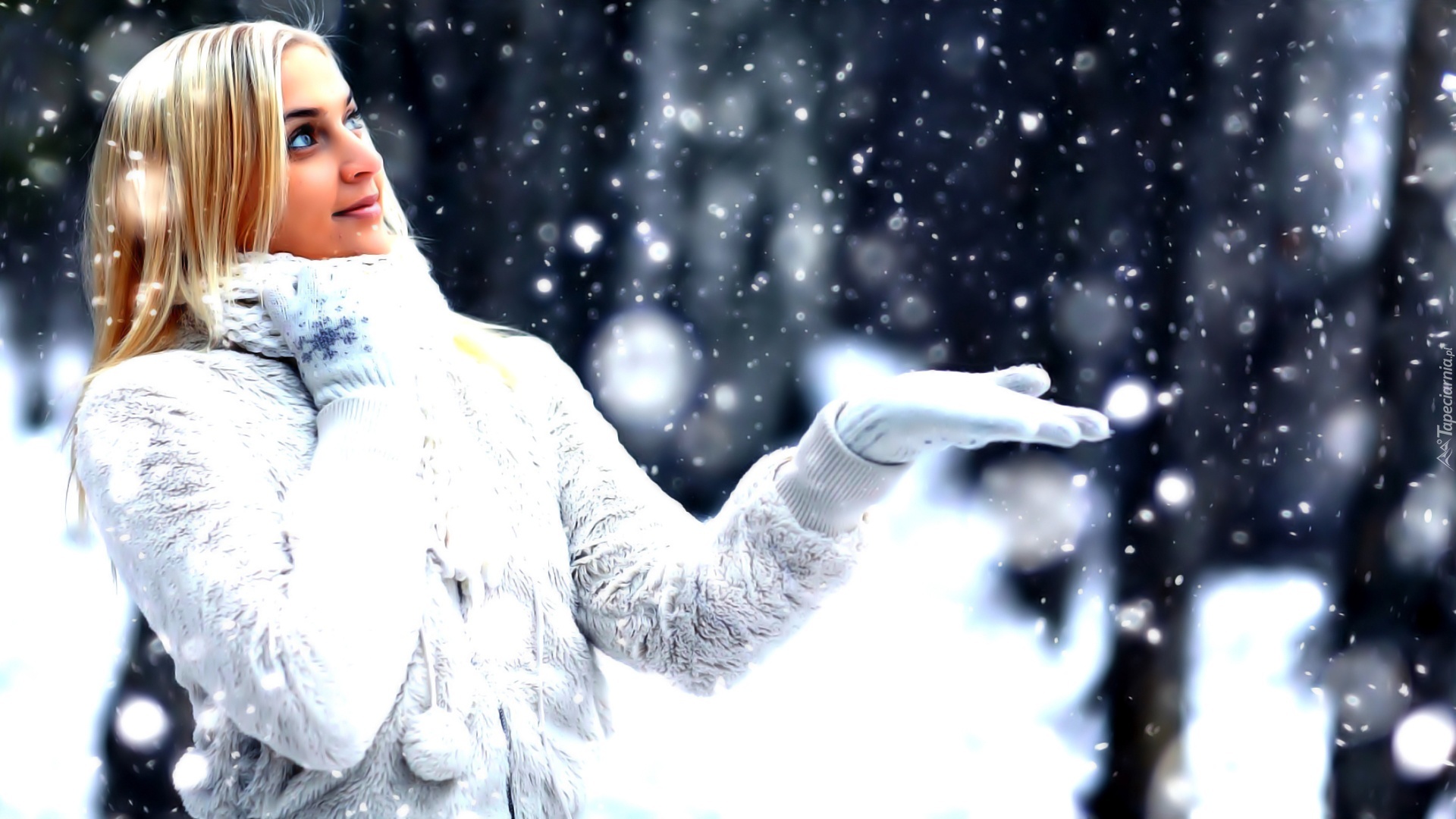 Edytor tapety: Zima, Kobieta, Padający, Śnieg