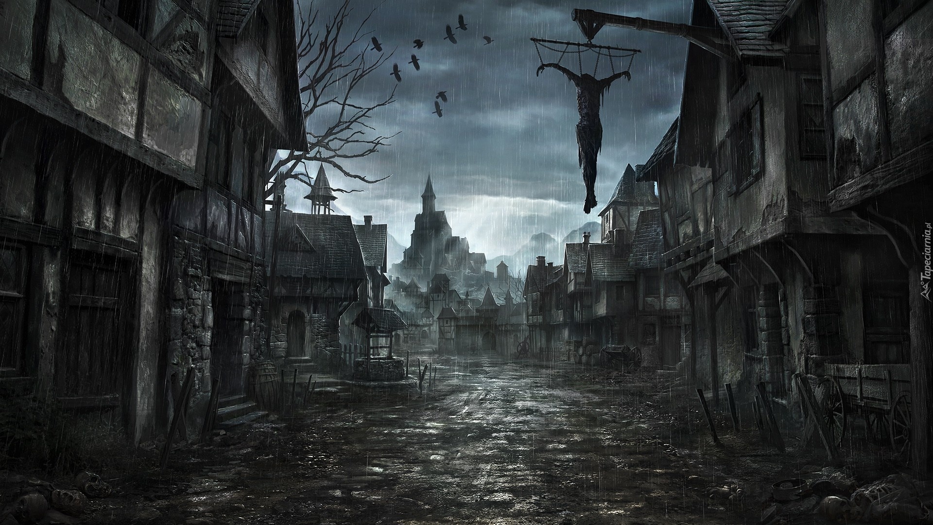 Edytor tapety: Miasto, Ulica, Deszcz, Ptaki