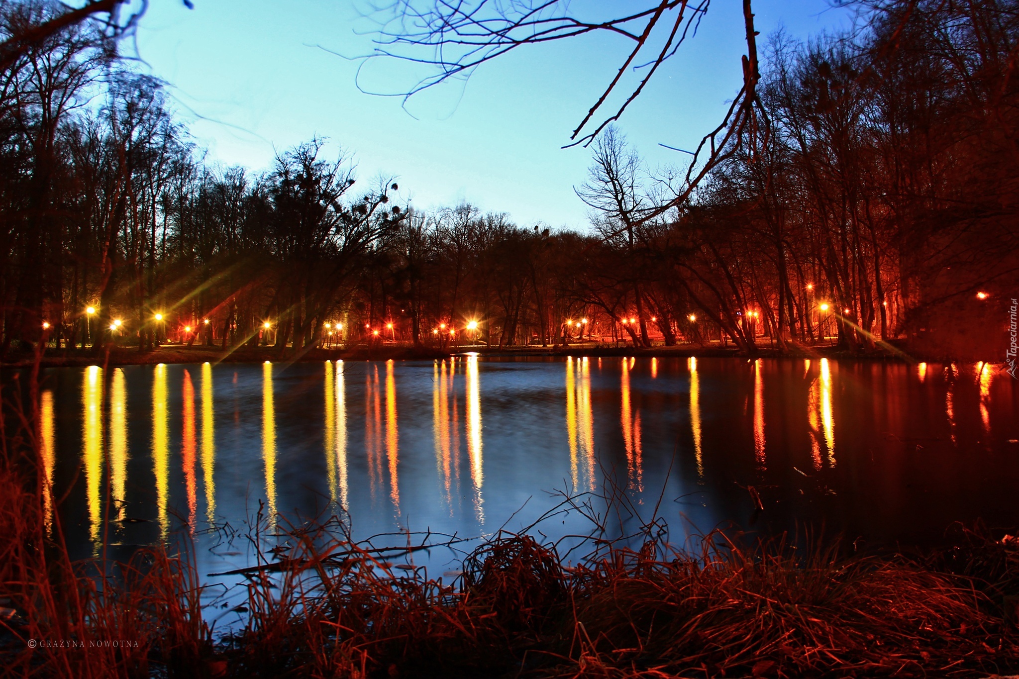 Edytor tapety: Park, Wieczór, Odbicia, Woda, Drzewa