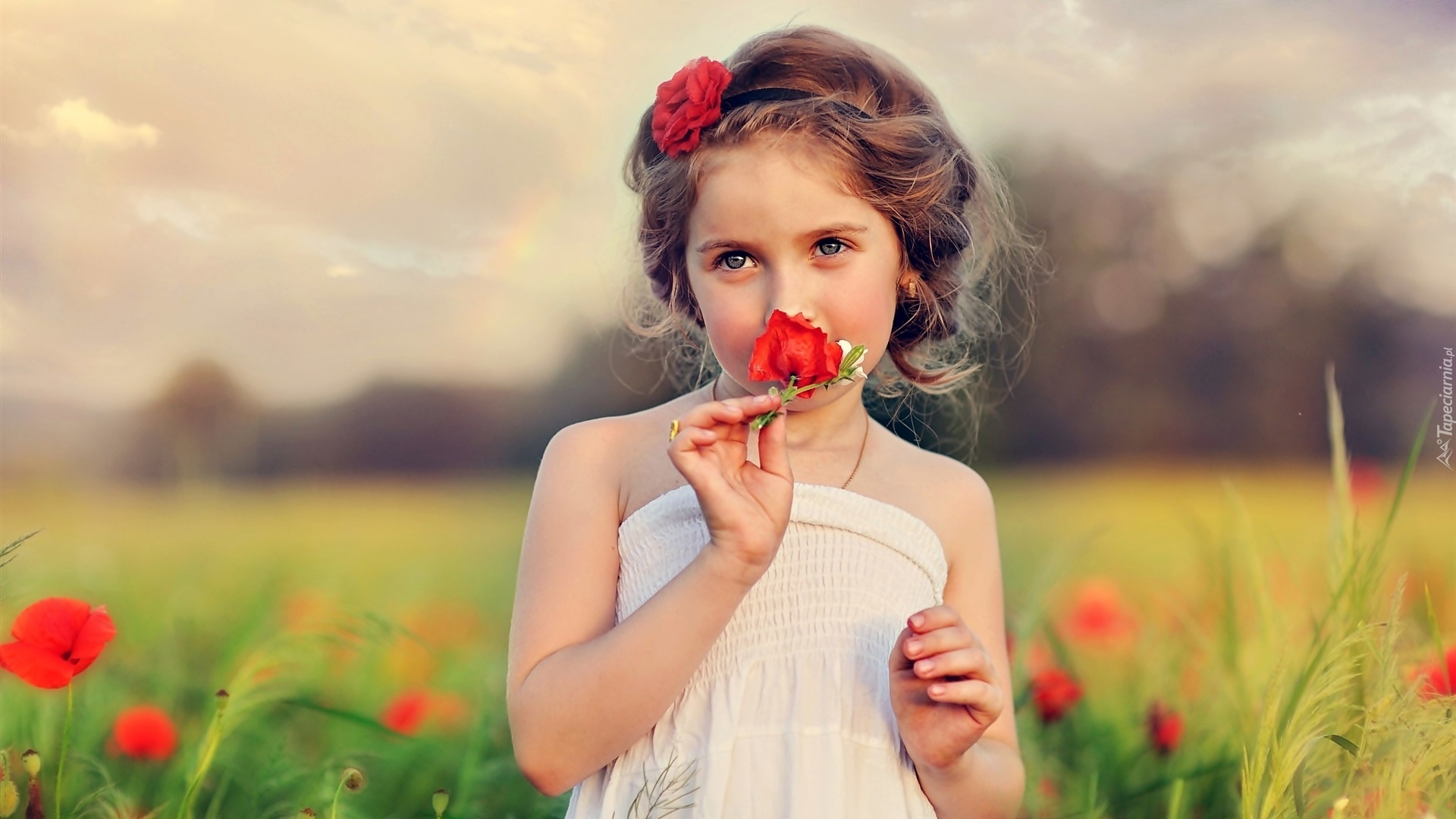 Edytor tapety: Dziewczynka, Łąka, Kwiaty, Mak