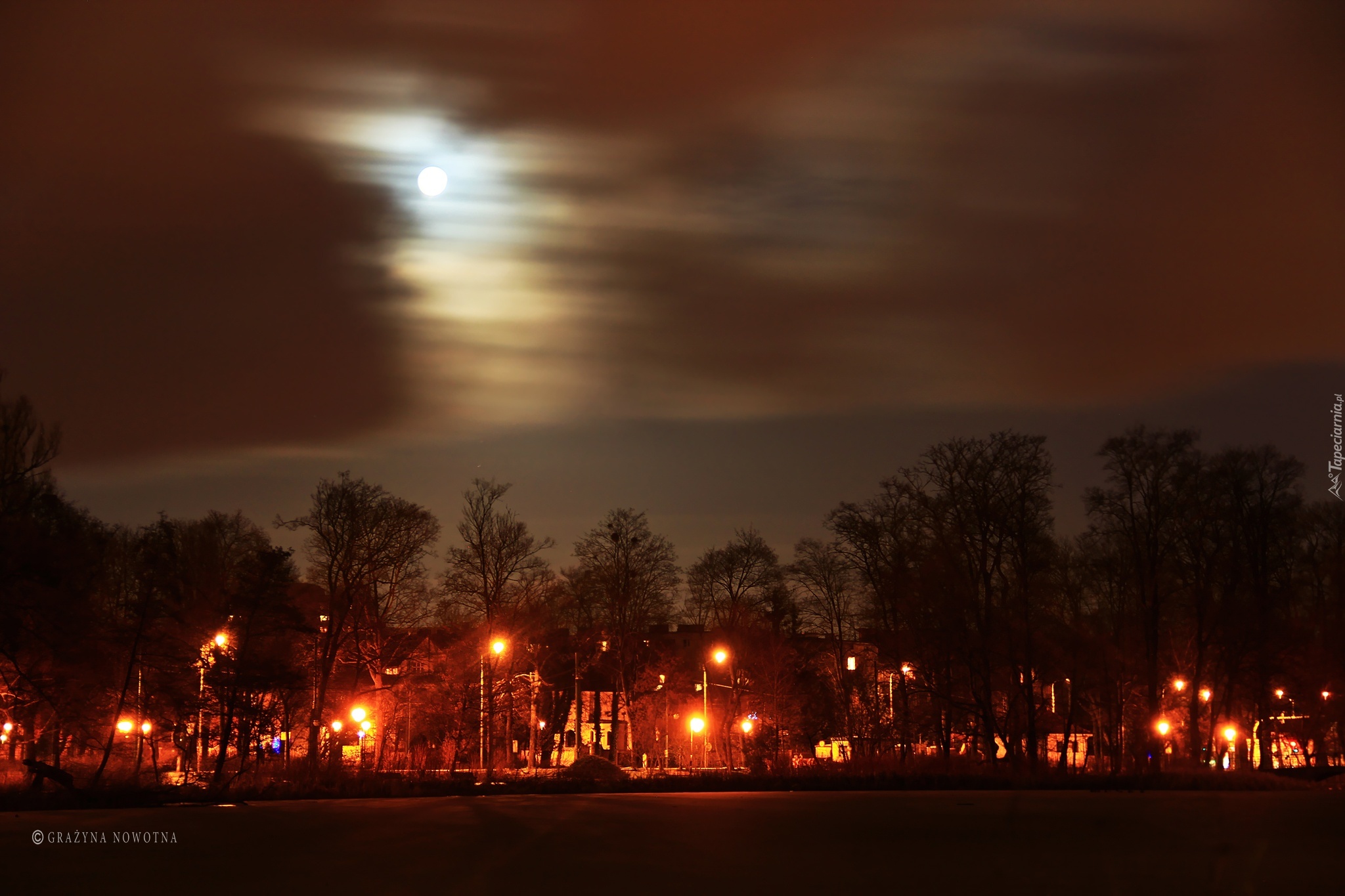 Edytor tapety: Park, Wieczór, Drzewa, Księżyc