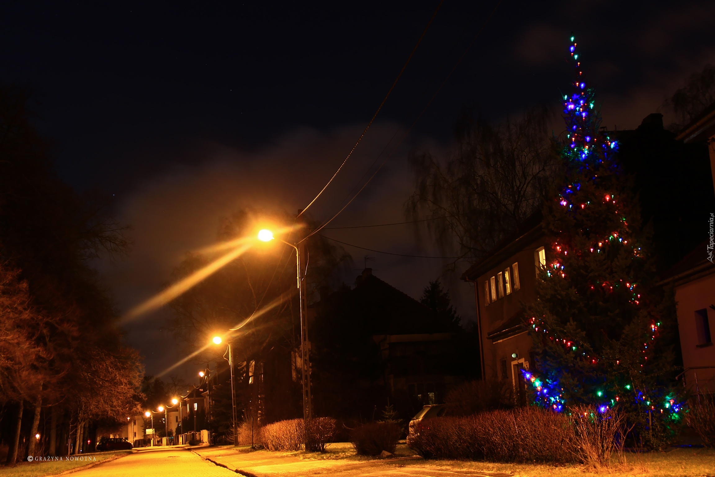 Edytor tapety: Poznań, Ulica, Litewska, Choinka, Latarnie