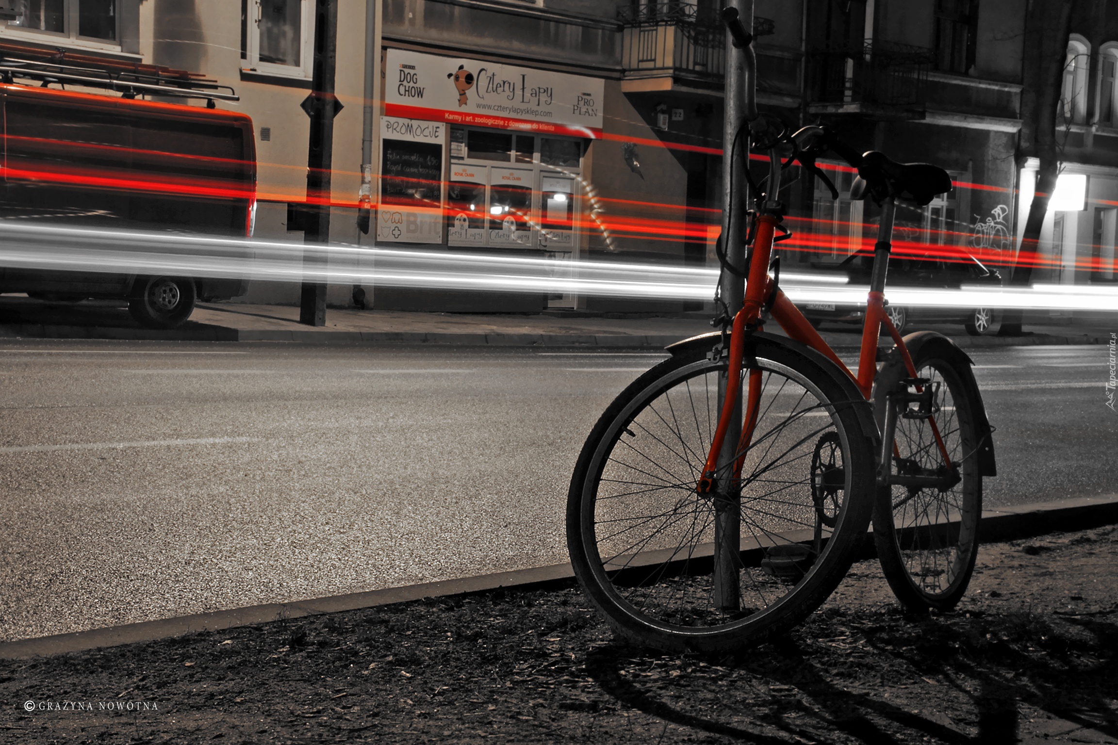 Edytor tapety: Czerwony, Rower, Wieczór, Światła