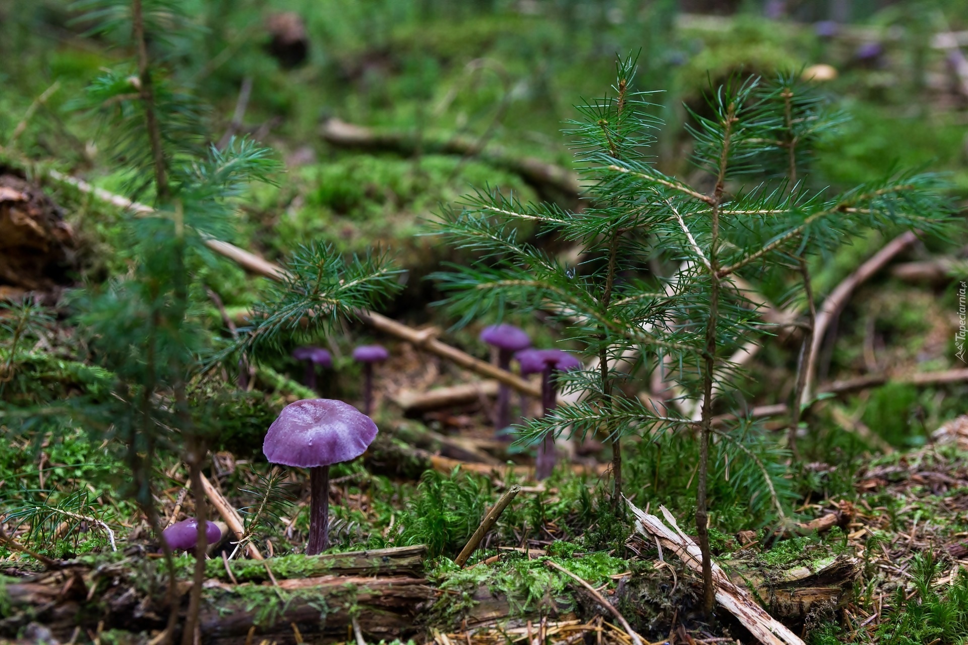 Edytor tapety: Fioletowe, Grzybki, Ściółka, Makro