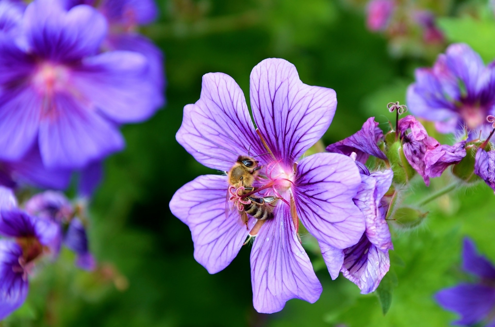 Edytor tapety: Fioletowe, Kwiatki, Pszczoła, Bodziszek