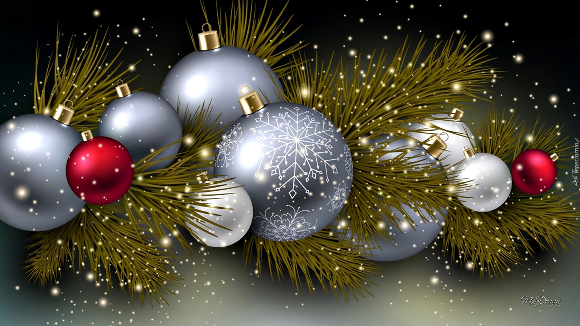 Edytor tapety: Bombki, Gałązki, Dekoracja, Świąteczna