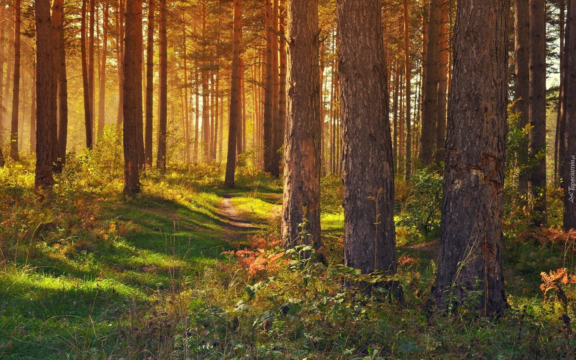 Edytor tapety: Las, Ścieżka, Roślinność, Przebijające Światło