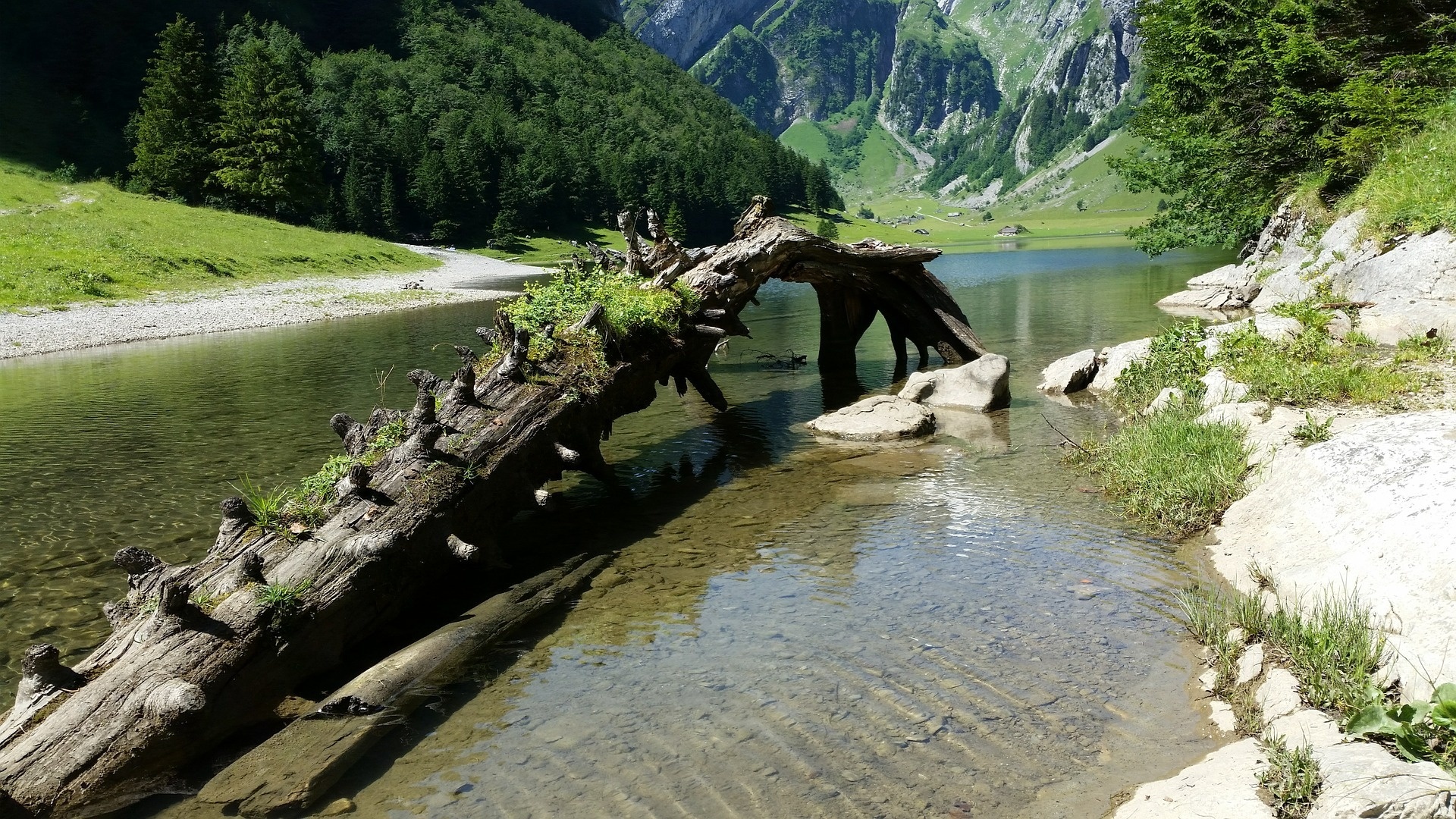 Edytor tapety: Uschnięte, Drzewo, Góry, Rzeka