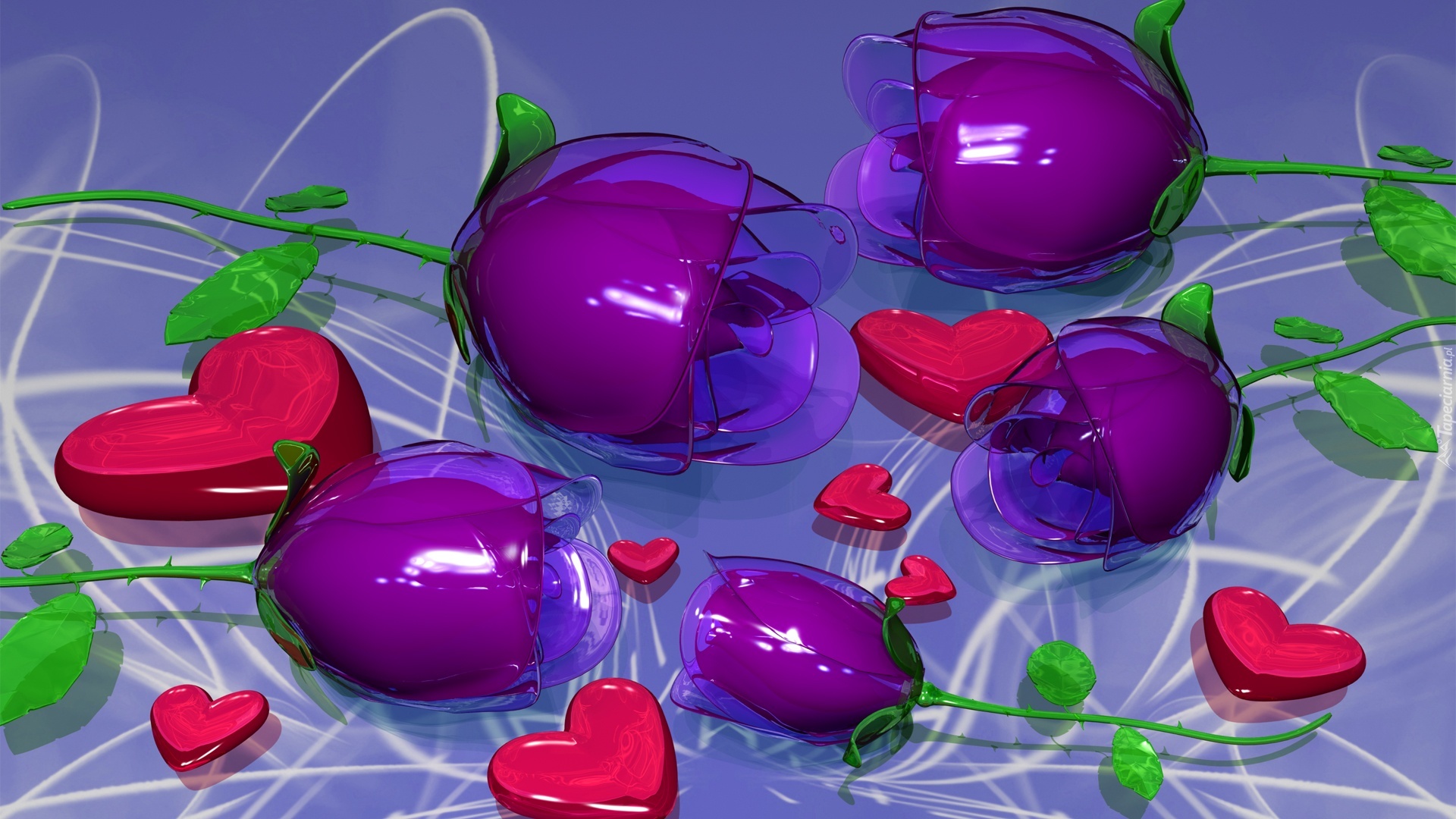 Edytor tapety: Walentynki, Serca, Kwiaty, 3D