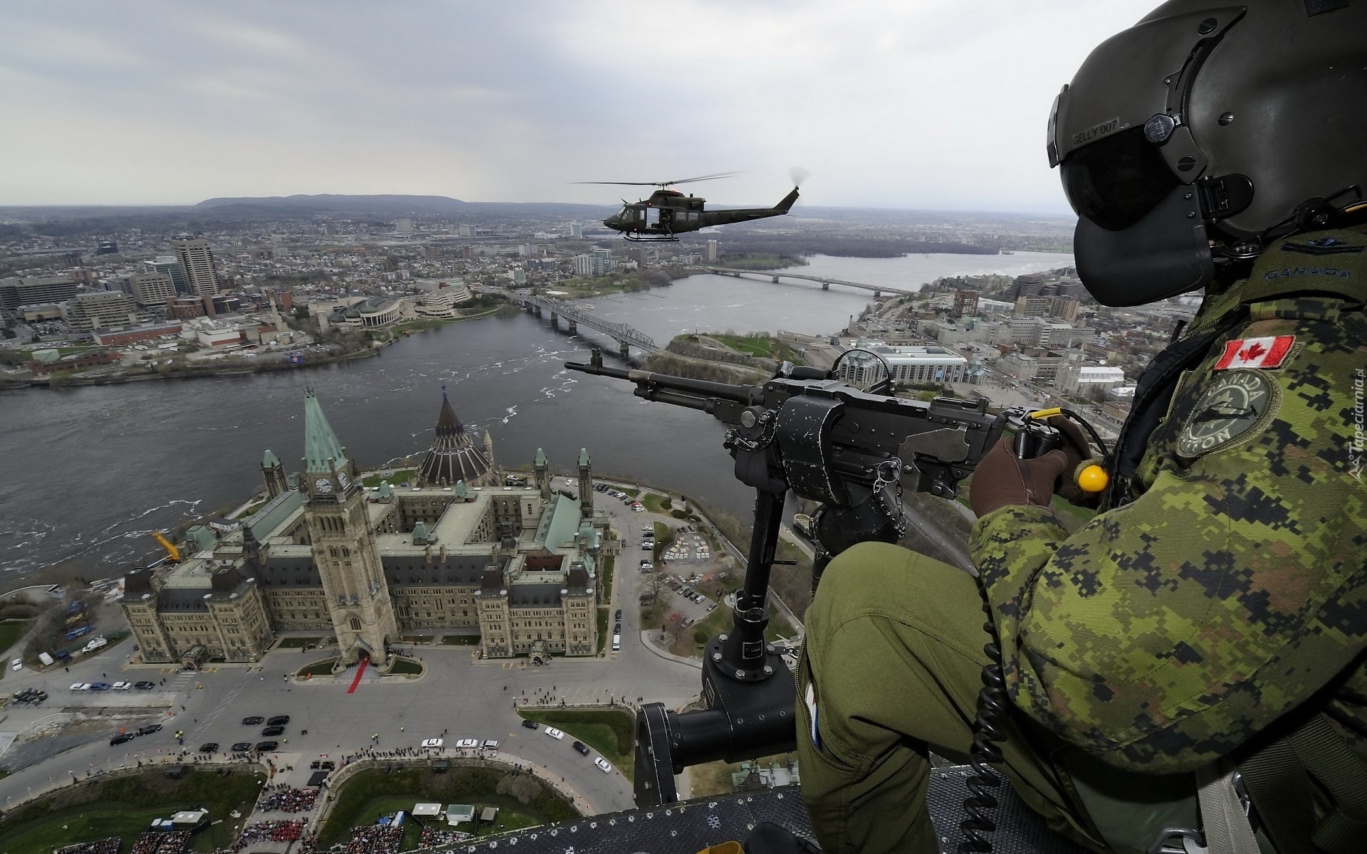 Edytor tapety: Żołnierz, Rzeka, Panorama, Miasta