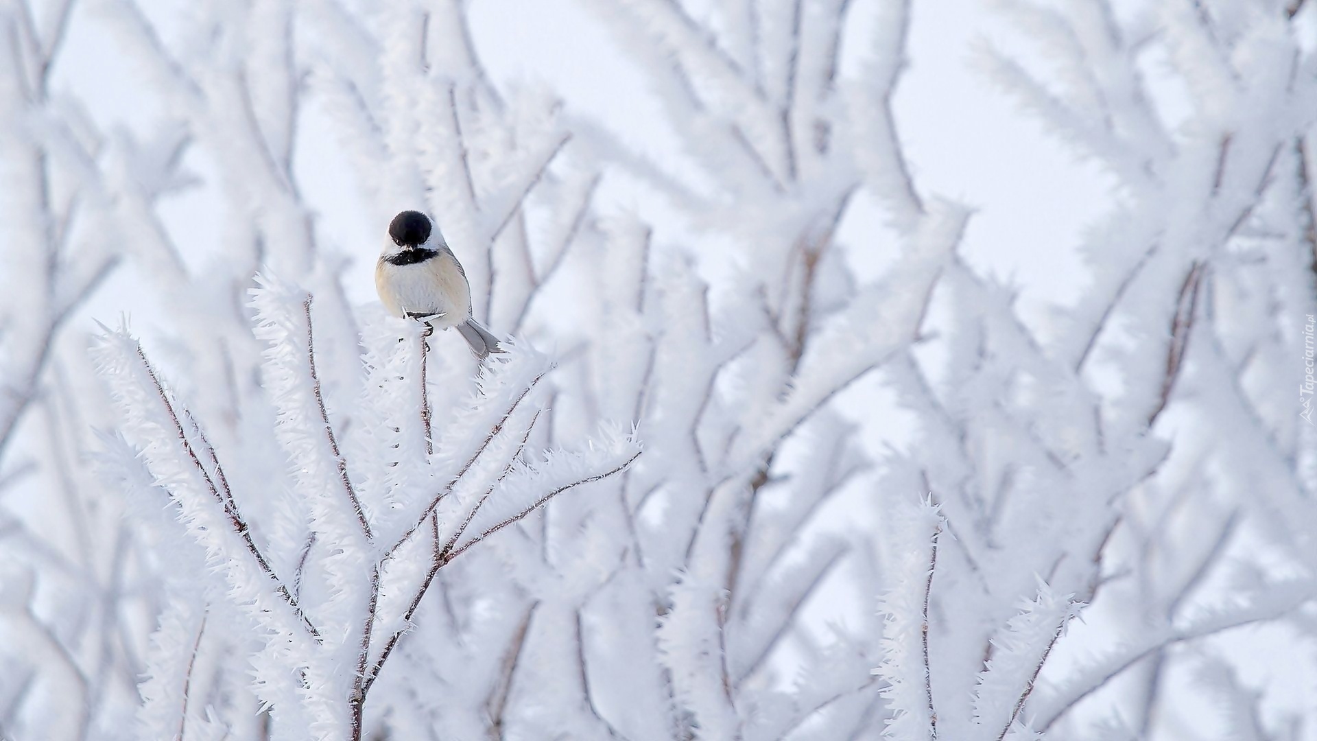 Edytor tapety: Zima, Gałęzie, Sikorka
