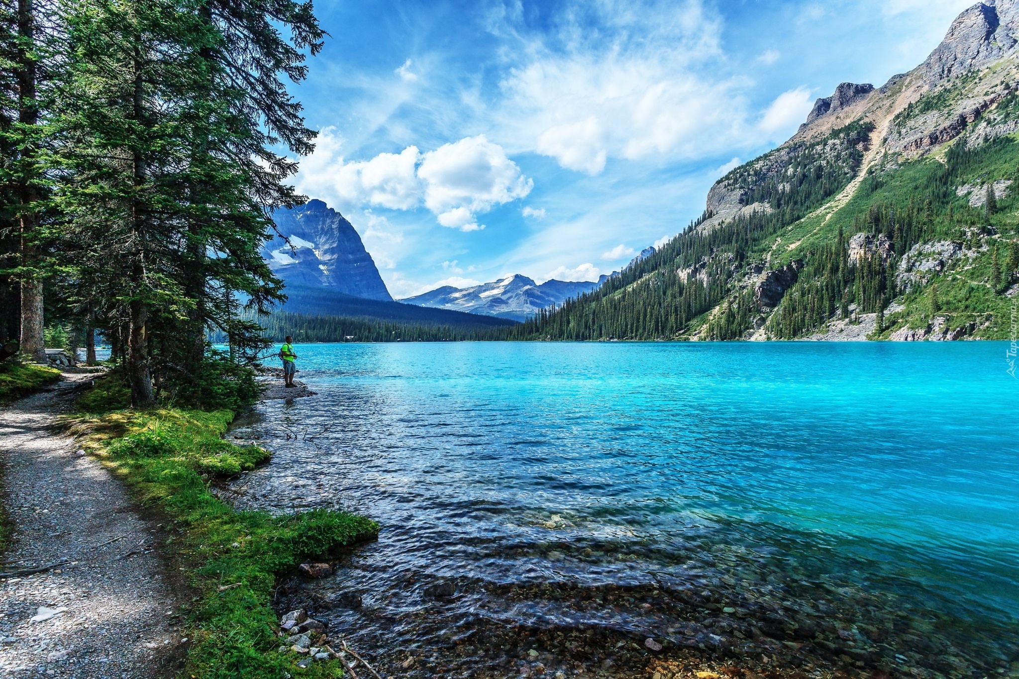Edytor tapety: Rzeka, Góry, Wędkarz