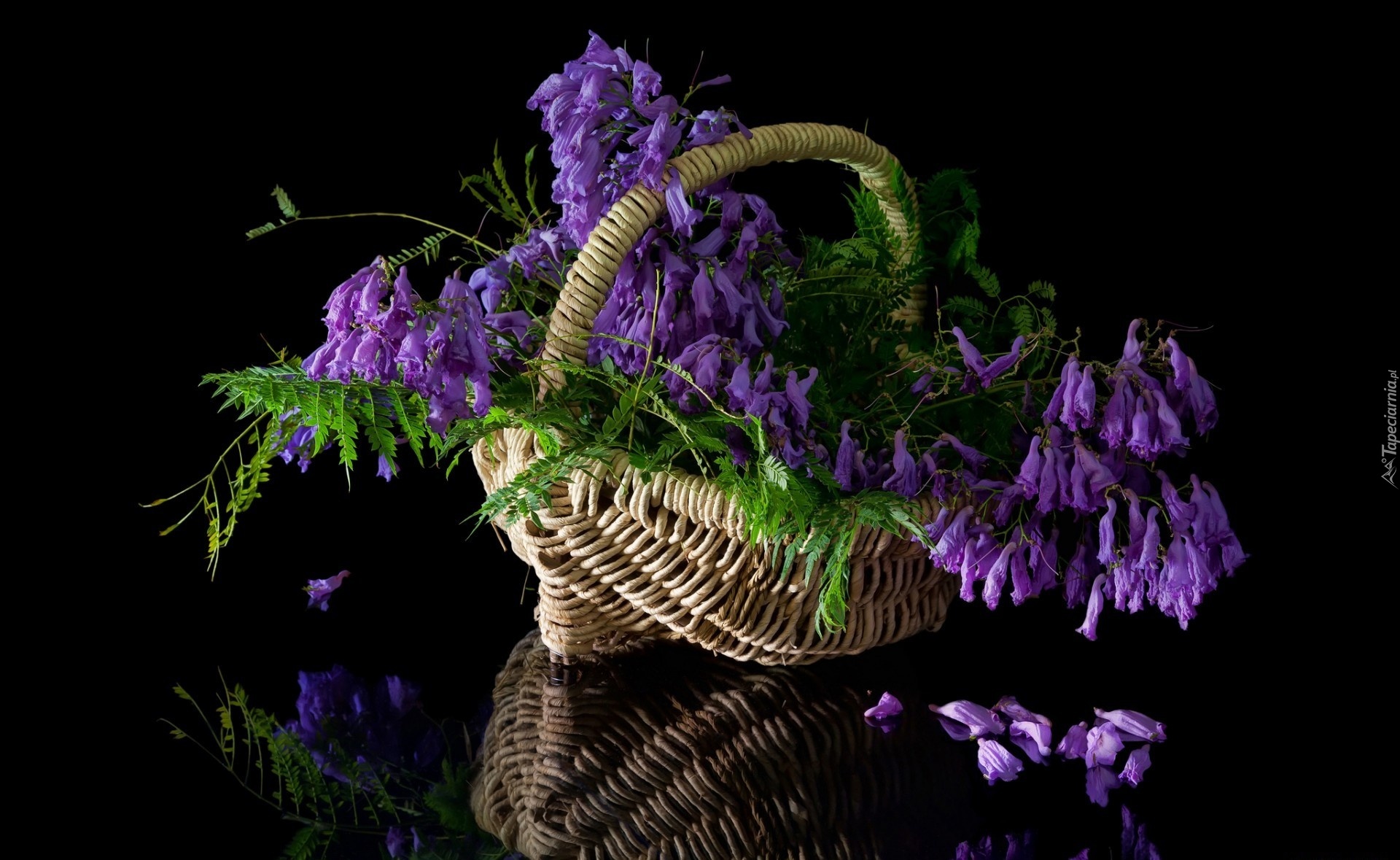 Edytor tapety: Fioletowe, Kwiaty, Bukiet, Koszyk, Odbicie