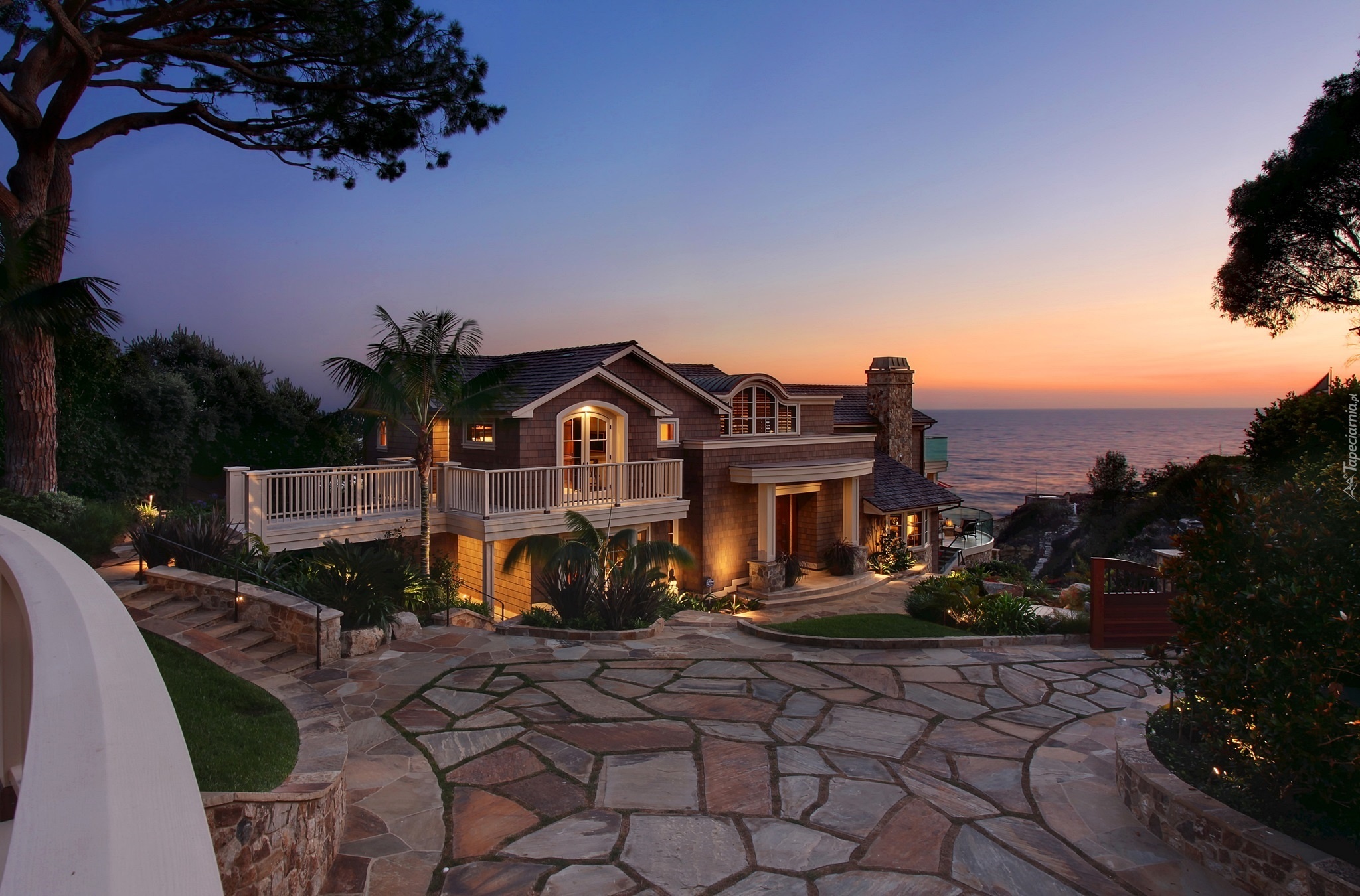 Edytor tapety: Dom, Podjazd, Morze, Zmierzch
